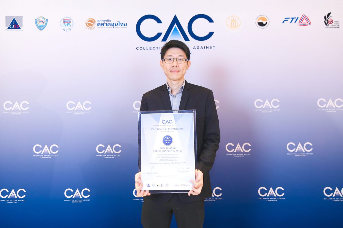 นายธันยา หวังธำรง ประธานเจ้าหน้าที่บริหาร บริษัท ผลธัญญะ จำกัด (มหาชน) หรือ PHOL เข้ารับประกาศนียบัตรหลังได้รับการรับรองการต่ออายุสมาชิกแนวร่วมต่อต้านคอร์รัปชันของภาคเอกชนไทย (Thai Private Sector Collective Action Against Corruption:CAC) ต่อเนื่องเป็นครั้งที่ 3 ในงาน “CAC Certification Ceremony 2/2025 ร่วมสร้างสิทธิประโยชน์แห่งความโปร่งใส เพื่อธุรกิจไทยยั่งยืน” ซึ่งการได้รับการรับรองในครั้งนี้สะท้อนถึงความมุ่งมั่นของ PHOL ในการดำเนินธุรกิจอย่างโปร่งใส บนหลักธรรมาภิบาล และเป็นส่วนหนึ่งในการร่วมป้องกันและต่อต้านการทุจริตคอร์รัปชันทุกรูปแบบ งานดังกล่าวจัดขึ้น ณ โรงแรมไฮแอท รีเจนซี่ กรุงเทพฯ เมื่อเร็ว ๆ นี้