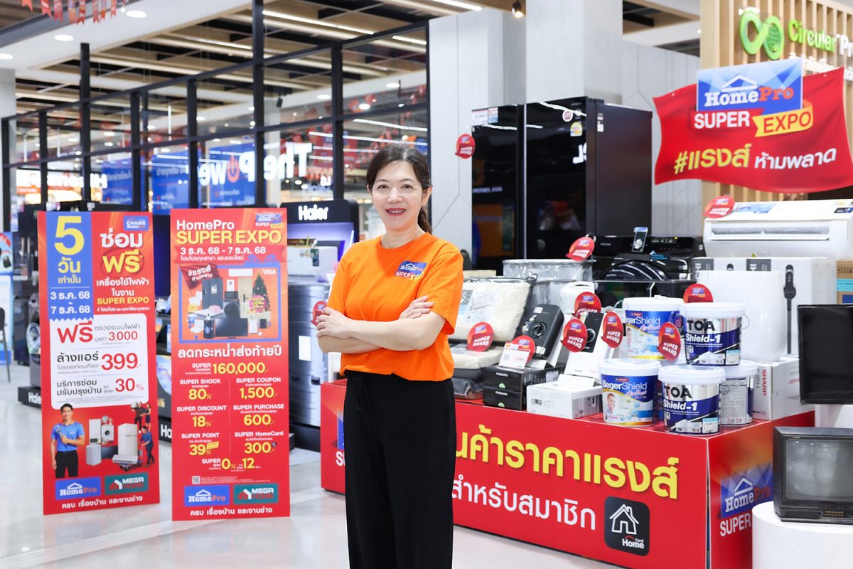โฮมโปร จัดมหกรรม “HomePro SUPER EXPO x CHANG HomePro ซ่อมฟรี! เครื่องใช้ไฟฟ้า” ส่งท้ายปี 3-7 ธันวาคม 2568 นี้ ทั่วประเทศ ยกระดับงานอีเว้นต์สินค้าและบริการเรื่องบ้านครั้งใหญ่ของปี สู่ภารกิจ ‘Better Living’ ชวนคนไทยทำ “บ้านดีขึ้น–โลกดีขึ้น” ไปพร้อมกัน มางานเดียวได้ครบทั้ง ช้อปคุ้ม-ซ่อมฟรี-ลดขยะ ผ่านการช้อปสินค้าราคาคุ้มค่า ควบคู่ไปกับบริการซ่อมเครื่องใช้ไฟฟ้าเก่า เพื่อยืดอายุการใช้งาน ให้สินค้ากลับมามีคุณค่าอีกครั้ง จากทีมช่างโฮมโปร-มือโปรประจำบ้านคุณ ที่รับซ่อมเครื่องใช้ไฟฟ้าทุกรุ่น ทุกแบรนด์ (แม้ไม่ได้ซื้อจากโฮมโปร) ฟรี! ค่าแรง 2 ชิ้นแรก/สมาชิกโฮมการ์ด พร้อมดีลบริการจากช่างโฮมโปรแบบจัดเต็ม ทั้งตรวจระบบไฟฟ้าฟรี! มูลค่า 3,000 บาท ล้างแอร์ 399 บาท (*โปรฯแรงช่วงเช้า เท่านั้น*) และส่วนลดบริการซ่อม-ปรับปรุงบ้านสูงสุด 30% เสริมความคุ้มต่อกับ SUPER COUPON & SUPER CASHBACK แจกส่วนลด + รับเครดิตเงินคืนรวมสูงสุด 162,100 บาทที่โฮมโปร และส่วนลด + รับเงินคืนรวมสูงสุด 132,100 บาท ที่เมกาโฮม และฉลองครบรอบ 29 ปีโฮมโปร ช้อปทุก 3,000 บาท รับ 1 สิทธิ์ ลุ้นทอง รวมมูลค่า 29 บาท (*หากชำระด้วยบัตรเครดิต VISA รับสิทธิ์เพิ่มอีก 5 เท่า*) และยังได้มีส่วนร่วมทำสิ่งดีๆ เพื่อโลก กับกิจกรรม “ขวดใสมีค่าอย่าทิ้ง” เปลี่ยนขวดน้ำพลาสติก ขนาด 330 มล. ขึ้นไป เป็นส่วนลด ห้ามพลาด !! มางานเดียวได้ครบทั้งความคุ้มสินค้าและบริการเรื่องบ้าน และได้ลดขยะให้โลกไปพร้อมกัน พบกันที่โฮมโปร เมกาโฮมทุกสาขาทั่วประเทศและออนไลน์ ตั้งแต่ 3-7 ธันวาคม 2568 นี้ 5 วันเท่านั้น !!