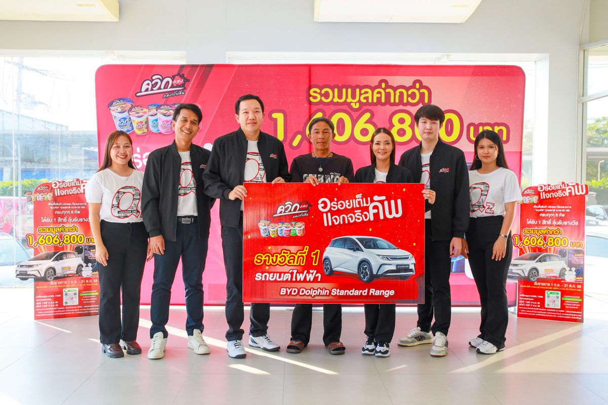 นายยศสรัล แต้มคงคา ผู้อำนวยการบริหารฝ่ายการตลาด บริษัท โรงงานผลิตภัณฑ์อาหารไทย จำกัด ผู้ผลิตและจัดจำหน่ายบะหมี่กึ่งสำเร็จรูปไวไว, บะหมี่กึ่งสำเร็จรูปควิกแสบ, เส้นหมี่อบแห้งไวไว และผงปรุงสำเร็จตรารสเด็ด มอบรางวัลรถยนต์ไฟฟ้า BYD Dolphin Standard Range มูลค่า 599,000 บาท ให้แก่ นายกิตติ กั๊วะห้วยขวาง ผู้โชคดีจากแคมเปญ “อร่อยเต็มคัพ แจกจริงคัพ” นอกจากนี้ ยังมอบรางวัล iPhone 16 Pro จำนวน 10 เครื่อง และ AirPods 4 จำนวน 10 รางวัล แก่ผู้โชคดีทั้ง 20 ราย โดยมี นายธีรเมธ เลาวานันท์พันธุ์ รองผู้อำนวยการฝ่ายขาย, นางสาวณิชรัตน์ ชำนาญกิจ ผู้อำนวยการฝ่ายส่งเสริมการตลาด (ฝ่ายการตลาด) และนายอิสสระ ณะเสน ผู้จัดการฝ่ายการตลาดบริหารผลิตภัณฑ์ เข้าร่วมงานด้วย ณ ศูนย์บริการ BYD สาขาอ้อมใหญ่ เมื่อเร็วๆ นี้