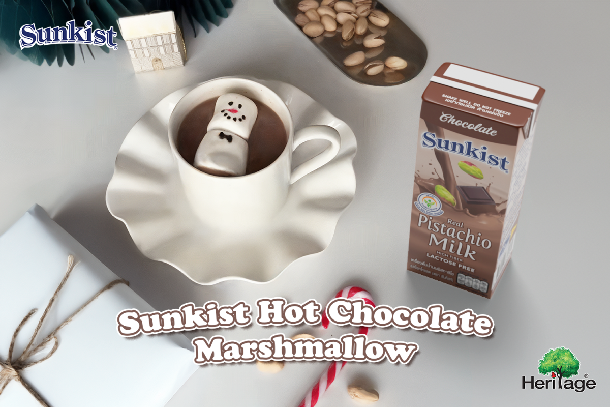 เมื่อลมหนาวพัดมาและช่วงเวลาแห่งวันหยุดได้เริ่มต้นขึ้น ไม่มีอะไรจะดีไปกว่าการได้เอนหลังพักผ่อนพร้อมเครื่องดื่มอุ่นๆ ในมือ วันนี้เราขอแนะนำเมนูพิเศษ “Sunkist Hot Chocolate Marshmallow” ที่ยกระดับโกโก้ร้อนธรรมดาให้พิเศษกว่าเดิม ด้วยความหอมมันที่เป็นเอกลักษณ์จากนมพิสทาชิโอ ผสมผสานกับความหวานละมุนของมาชเมลโล่ เป็นเมนูที่ทำง่ายแต่ให้ความรู้สึกหรูหราเหมือนดื่มอยู่ในคาเฟ่ชื่อดัง อีกทั้งยังมีคุณประโยชน์มากมาย เพราะ เครื่องดื่มน้ำนมพิสทาชิโอแบรนด์ซันคิสท์ อุดมไปด้วยสารอาหารที่ดีอย่าง วิตามินอี แคลเซียม มีใยอาหารสูง ที่สำคัญไม่มีส่วนผสมของนมวัวและถั่วเหลือง ปราศจากแลคโตส โดนมีส่วนผสมและวิธีการทำที่ง่ายๆ ดังนี้