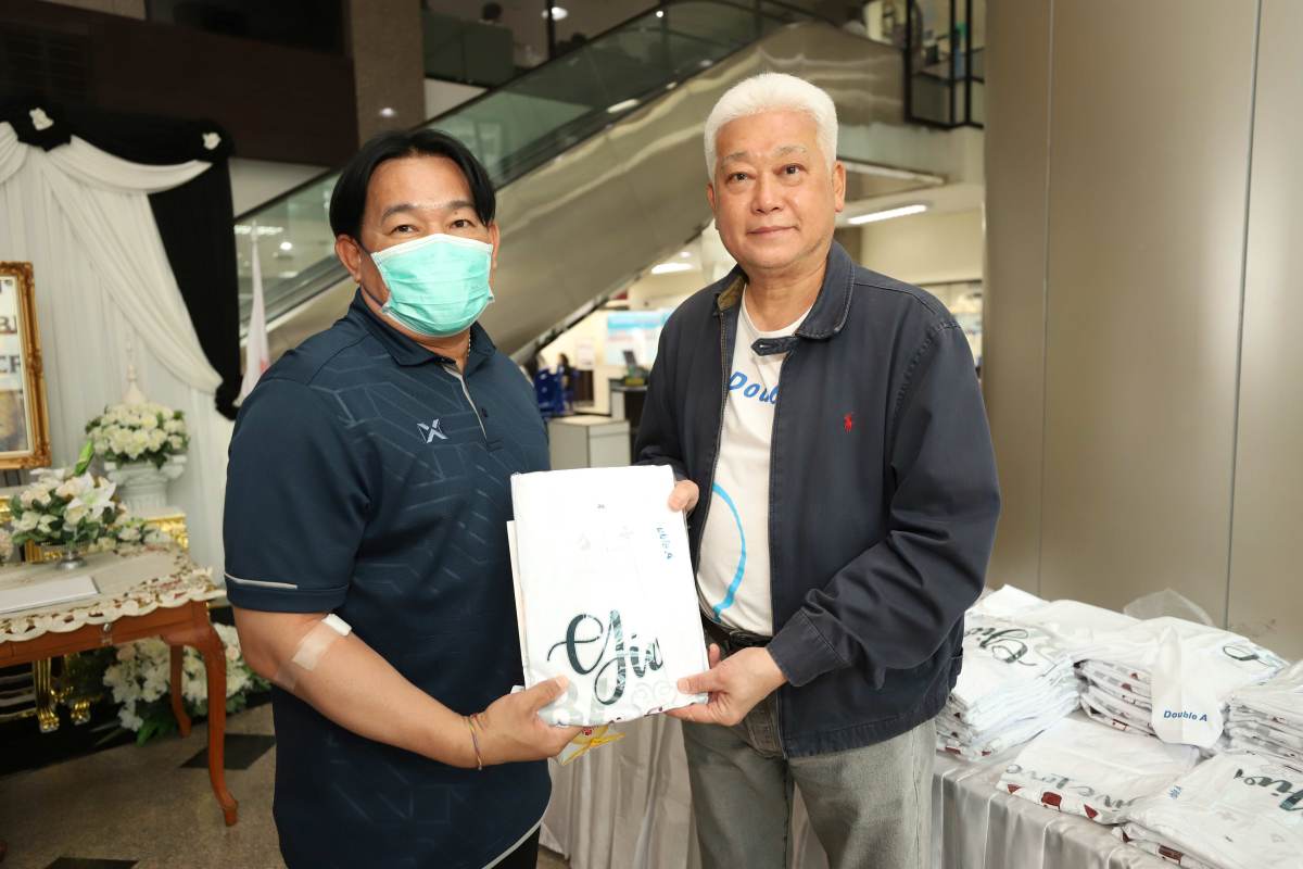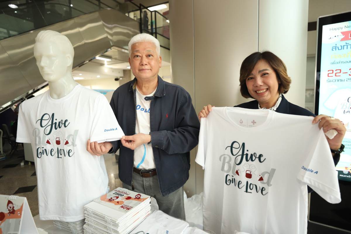 ทั้งนี้  ดั๊บเบิ้ล เอ  ได้ร่วมสนับสนุนเสื้อลายพิเศษ “Give Blood Give Love” เพื่อมอบเป็นของที่ระลึกแทนคำขอบคุณให้แก่ผู้มาบริจาคโลหิต โดยมี นายชาญวิทย์ จารุสมบัติ กรรมการบริษัท และรองกรรมการผู้จัดการใหญ่ ด้านสื่อสารและภาพลักษณ์องค์กร ดั๊บเบิ้ล เอ  เป็นตัวแทนมอบเสื้อรวม 500 ตัว และได้รับเกียรติจาก นางสาวปิยนันท์ คุ้มครอง ผู้ช่วยผู้อำนวยการด้านจัดหาโลหิตและภาพลักษณ์องค์กร ศูนย์บริการโลหิตแห่งชาติ สภากาชาดไทย เป็นผู้แทนรับมอบ  ณ ศูนย์บริการโลหิตแห่งชาติ สภากาชาดไทย
