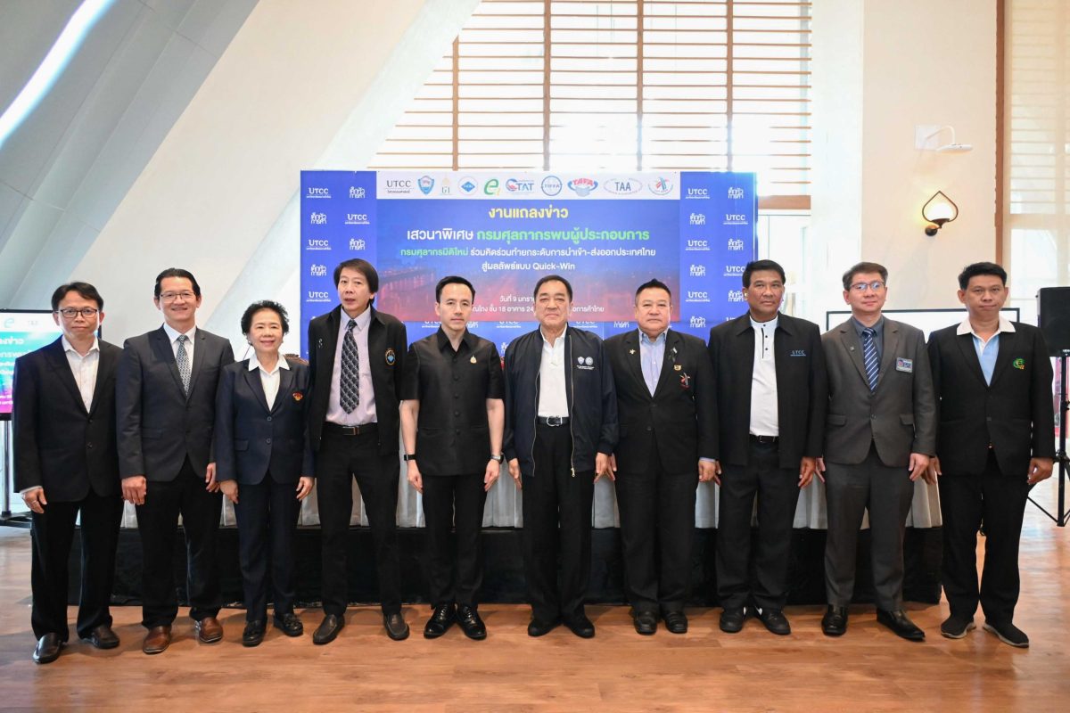 งานแถลงข่าว เสวนาพิเศษ กรมศุลกากรพบผู้ประกอบการ กรมศุลกากรมิติใหม่ ร่วมคิดร่วมทำ ยกระดับการนำเข้า-ส่งออกประเทศไทย สู่ผลลัพธ์แบบ Quick – Win แนวคิด Quick Win เป็นการทำเรื่องที่ ไม่ซับซ้อน ทำได้เร็ว และเห็นผลในระยะสั้น เพื่อช่วยให้การค้าระหว่างประเทศของไทยคล่องตัวขึ้นทันที ไม่ต้องรอแผนระยะยาวหลายปี จัดโดยคณะวิศวกรรมศาสตร์ มหาวิทยาลัยหอการค้าไทย ซึ่งได้รับเกียรติจาก ดร.พจน์ อร่ามวัฒนานนท์ ประธานกรรมการหอการค้าไทย และสภาหอการค้าแห่งประเทศไทย ร่วมถ่ายภาพและกล่าวแสดงความยินดี ทั้งนี้ภายในงานได้รับเกียรติจากคณะผู้บริหารและผู้ทรงคุณวุฒิร่วมแสดงวิสัยทัศน์บนเวที ได้แก่ :