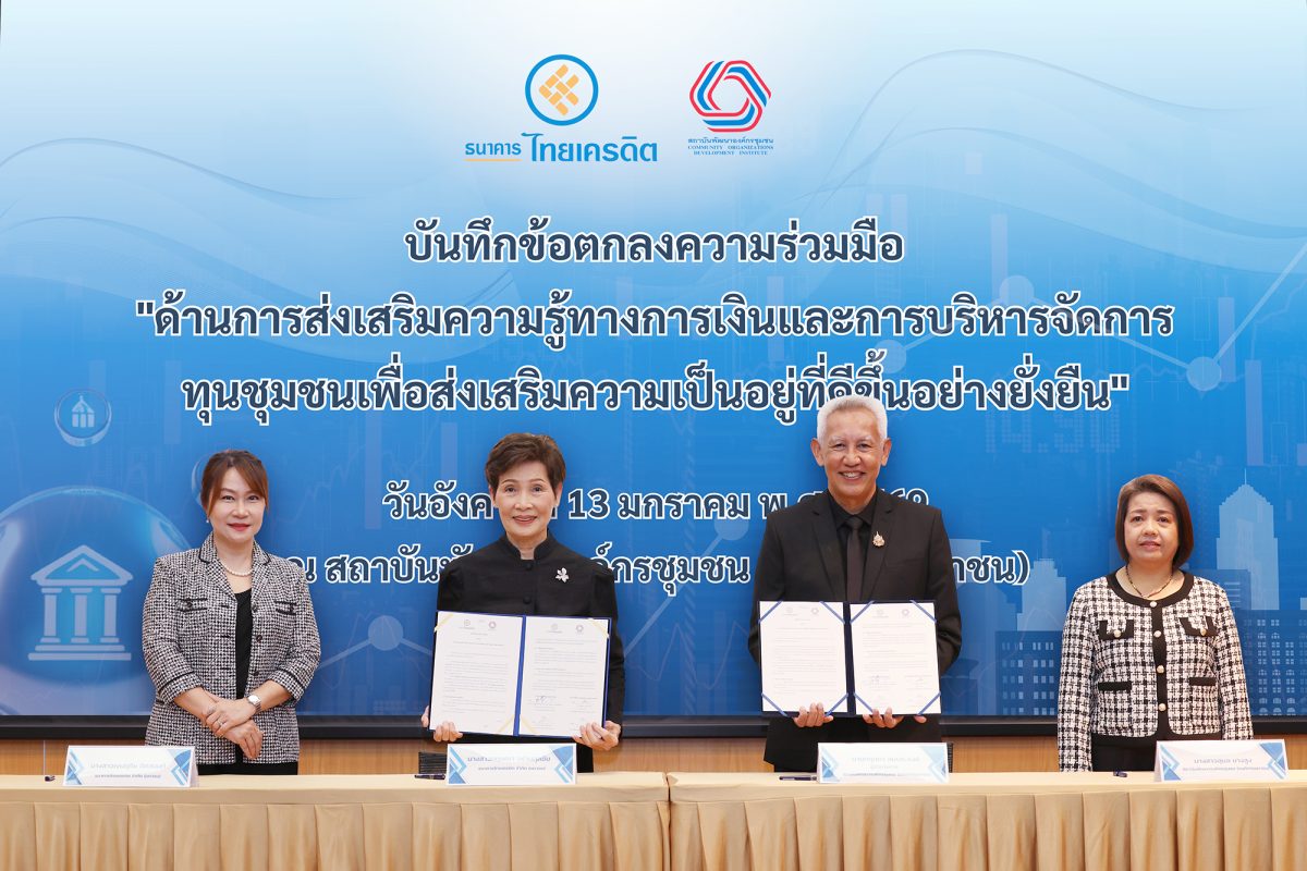 ธนาคารไทยเครดิต จำกัด (มหาชน) เดินหน้าตอกย้ำจุดยืนในการเป็นธนาคารเพื่อสังคมและความยั่งยืน จับมือสถาบันพัฒนาองค์กรชุมชน (องค์การมหาชน) หรือ พอช. (ภายใต้การกำกับดูแลของรัฐมนตรีว่าการกระทรวงการพัฒนาสังคมและความมั่นคงของมนุษย์) ลงนามบันทึกข้อตกลงความร่วมมือ (MOU) “ด้านการส่งเสริมความรู้ทางการเงิน และการบริหารจัดการทุนชุมชน เพื่อส่งเสริมความเป็นอยู่ที่ดีขึ้นอย่างยั่งยืน” โดยมี นายกฤษดา สมประสงค์ ผู้อำนวยการสถาบันพัฒนาองค์กรชุมชน และ นางสาวกฤษณา อร่ามกุลชัย กรรมการ ธนาคารไทยเครดิต จำกัด (มหาชน) ผู้บริหารระดับสูงจากทั้งสององค์กรเข้าร่วมพิธีลงนาม จัดขึ้นเมื่อวันที่ 13 มกราคม 2569 ณ ห้องประชุมไพบูลย์วัฒนศิริธรรม สถาบันพัฒนาองค์กรชุมชน