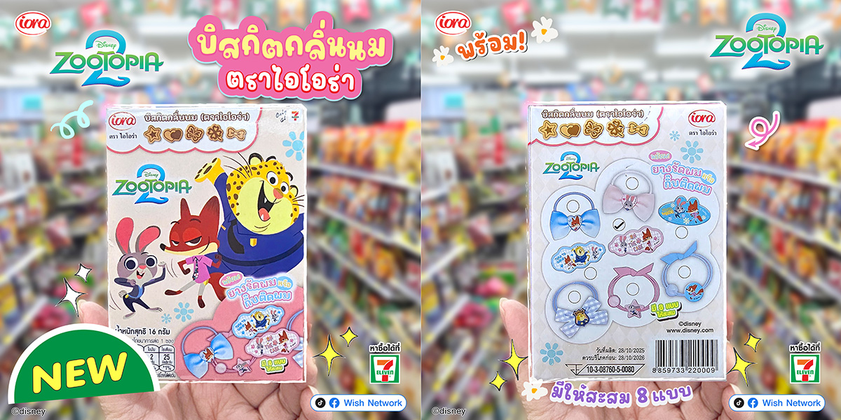 บิสกิตกลิ่นนม ตราไอโอร่า Disney Zootopia วางจำหน่ายแล้วที่ร้าน 7-Eleven ทุกสาขาทั่วประเทศ และสามารถเลือกซื้อแบบยกแพคผ่านช่องทาง All Online