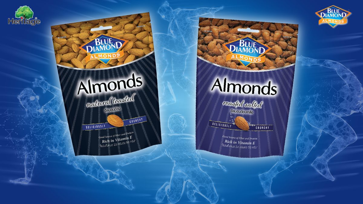 บลูไดมอนด์ แบรนด์อัลมอนด์พรีเมียม ผลิตภัณฑ์ถั่วอัลมอนด์จากแคลิฟอร์เนีย และเครื่องดื่มน้ำนมอัลมอนด์ “อัลมอนด์ บรีซ” ภายใต้การดูแลของเครือเฮอริเทจ นำเสนอผลิตภัณฑ์อัลมอนด์คัดเกรดเมล็ดเต็ม กับอัลมอนด์อบ คั่วอุณหภูมิต่ำเพื่อคงคุณค่าธรรมชาติ และบรรจุด้วยเทคโนโลยีป้องกันออกซิเดชัน ทำให้รสชาติคงความสดใหม่ พร้อมคงคุณค่าทางโภชนาการได้อย่างครบถ้วน พร้อมตอบโจทย์เอ็กซ์ตรีมไลฟ์สไตล์ เหมาะสำหรับพกพาในรูปแบบซองซิป หรือบรรจุกระป๋อง เป็นของว่างที่ให้พลังงานสูง สำหรับผู้ที่ดูแลสุขภาพ ปราศจากการแต่งกลิ่นและปรุงรส สำหรับผู้ชื่นชอบถั่วทานเล่นแบบเพิ่มความเข้มข้นเล็กน้อย พร้อมให้เลือกรสชาติหลากหลาย นำเสนอ ทั้ง บลูไดมอนด์ อัลมอนด์อบเกลือ, บลูไดมอนด์ อัลมอนด์บาร์บีคิว, บลูไดมอนด์ อัลมอนด์รมควัน และบลูไดมอนด์ อัลมอนด์อบน้ำผึ้ง