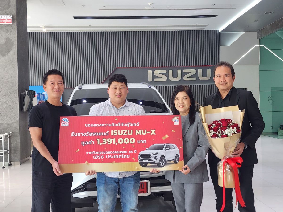สิ้นสุดการรอคอย เอิร์ธ ฉลองครบรอบ 45 ปี เผยโฉมผู้โชคดีได้รับรางวัลใหญ่ รถยนต์ Isuzu MU-X 2.2 Elegant 8AT มูลค่า 1,391,000 บาท สร้างรอยยิ้มและเติมเต็มความสุขให้กับลูกค้า ปิดจบแคมเปญอย่างยิ่งใหญ่ด้วยความประทับใจ