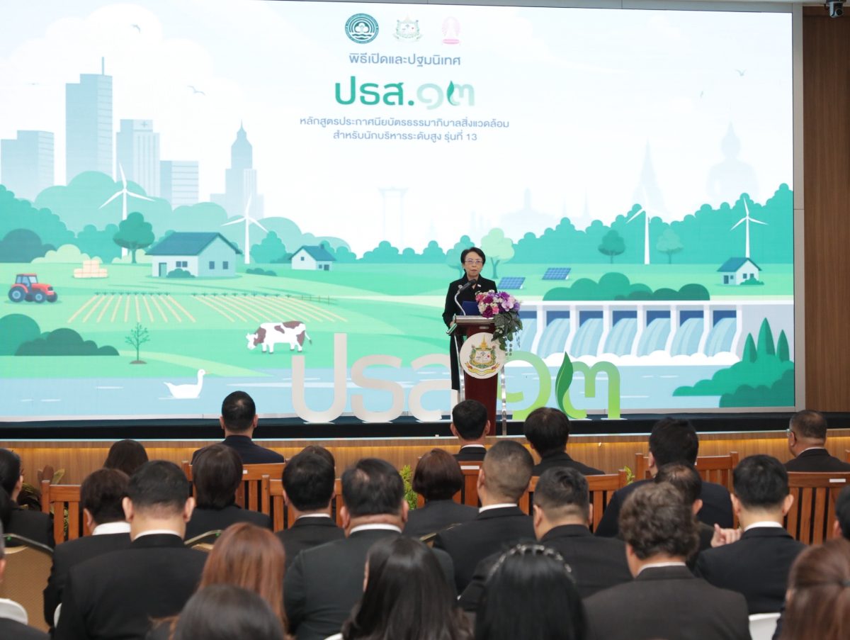 กระทรวงทรัพยากรธรรมชาติและสิ่งแวดล้อม (ทส.) โดยกรมการเปลี่ยนแปลงสภาพภูมิอากาศและสิ่งแวดล้อม ร่วมกับจุฬาลงกรณ์มหาวิทยาลัย จัดให้พิธีปฐมนิเทศ และเปิดอบรม “หลักสูตรประกาศนียบัตรธรรมาภิบาลสิ่งแวดล้อมสำหรับนักบริหารระดับสูง รุ่นที่ 13 (ปธส.13)” โดยได้รับเกียรติจากนางสาวปรีญาพร สุวรรณเกษ รองปลัดกระทรวงทรัพยากรธรรมชาติและสิ่งแวดล้อม เป็นประธาน พร้อมกล่าวแสดงวิสัยทัศน์ นโยบาย และความคาดหวังของกระทรวงทรัพยากรธรรมชาติและสิ่งแวดล้อม และ ดร.พิรุณ สัยยะสิทธิ์พานิช อธิบดีกรมการเปลี่ยนแปลงสภาพภูมิอากาศและสิ่งแวดล้อม กล่าวรายงาน ศาสตราจารย์ ดร.พิสุทธิ์ เพียรมนกุล รองคณบดี คณะวิศวกรรมศาสตร์ จุฬาลงกรณ์มหาวิทยาลัย กล่าวแนะนำกิจกรรมหลักสูตร ปธส.13 ณ ห้องประชุมอารีย์สัมพันธ์ อาคารกรมการเปลี่ยนแปลงสภาพภูมิอากาศและสิ่งแวดล้อม กรุงเทพฯ