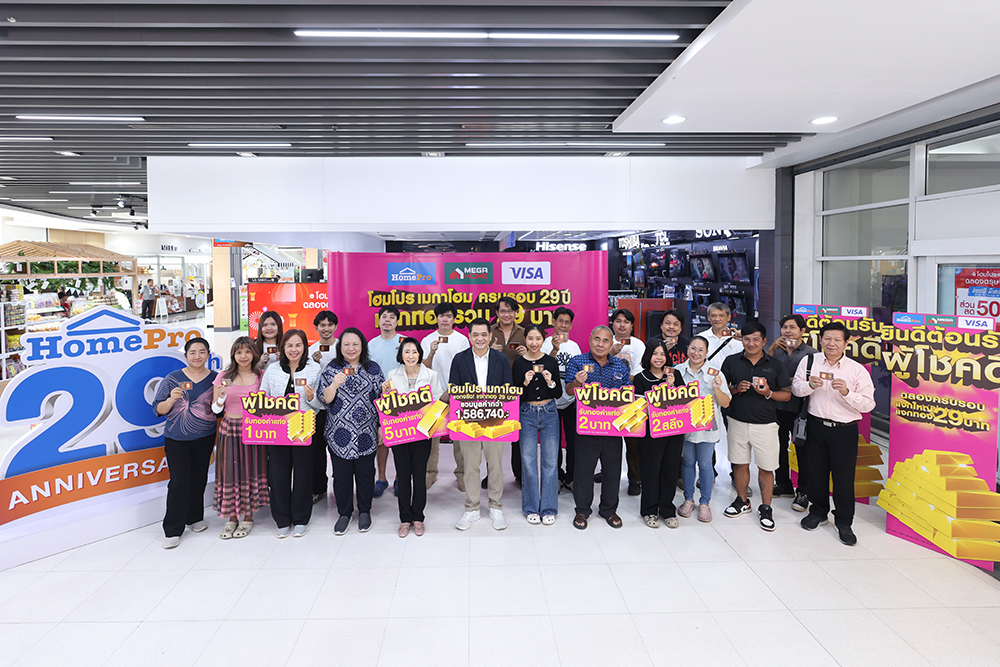 โฮมโปร ร่วมกับ เมกาโฮม เดินหน้าส่งมอบความสุขแทนคำขอบคุณให้กับลูกค้าทั่วประเทศ ผ่านแคมเปญ “โฮมโปร ฉลอง 29 ปี และเมกาโฮม ครบรอบ 12 ปี แจกทอง 29 บาท” สะท้อนความตั้งใจในการตอบแทนทุกความไว้วางใจที่มีให้กันมาอย่างต่อเนื่อง