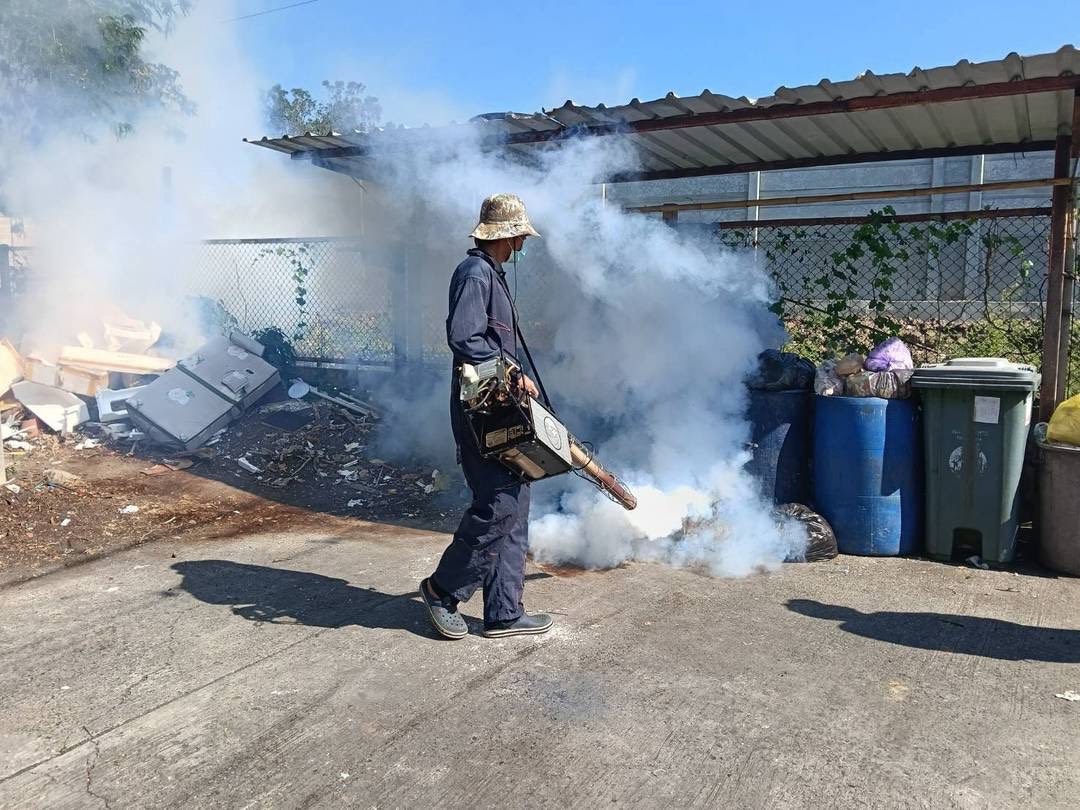 ทั้งนี้ สำนักงานเขตจะดำเนินการฉีดพ่นหมอกควันกำจัดยุงเมื่อพบผู้ป่วยโรคไข้เลือดออก โดยพ่นในบ้านผู้ป่วยและบริเวณโดยรอบในรัศมี 100 เมตร เพื่อกำจัดยุงตัวเต็มวัยที่อาจมีเชื้อไวรัสอยู่ในตัว กำหนดพ่นจำนวน 3 ครั้ง ได้แก่ วันพบผู้ป่วย (Day 0) วันที่ 3 และวันที่ 7 พร้อมติดตามสถานการณ์ต่อเนื่องตามมาตรการควบคุมโรค โดยการฉีดพ่นหมอกควันเป็นมาตรการที่จำเป็นในช่วงพบผู้ป่วยไข้เลือดออก เพื่อควบคุมการแพร่ระบาดอย่างรวดเร็ว โดยอาจมีกลิ่น หรือควันชั่วคราวจากสารละลายที่ใช้ผสม เช่น น้ำมันดีเซลในบางกรณี ซึ่งอาจก่อให้เกิดการระคายเคืองในผู้ที่ไวต่อกลิ่น หรือผู้ป่วยโรคทางเดินหายใจ สนอ. จึงแนะนำให้ประชาชนปิดบ้าน เก็บอาหาร และหลีกเลี่ยงการอยู่ในพื้นที่ระหว่างการพ่น หากมีอาการผิดปกติ เช่น ระคายเคืองตา แน่นหน้าอก หรือเวียนศีรษะ ควรออกจากพื้นที่และปรึกษาแพทย์