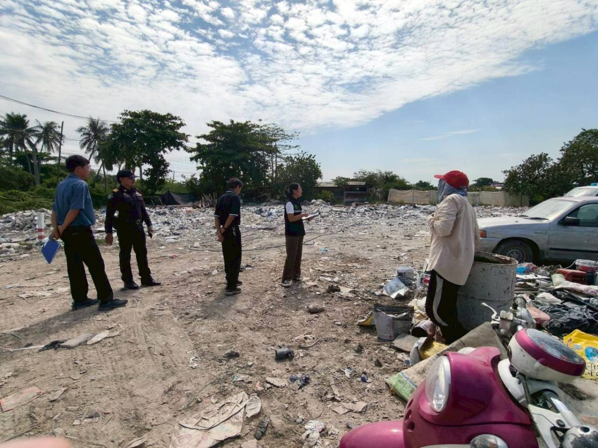 จากนั้น เมื่อวันที่ 11 มี.ค. 69 ได้ลงพื้นที่ตรวจสอบสถานที่ดังกล่าวอีกครั้ง พบมีการนำเศษวัสดุก่อสร้างและขยะทั่วไปผสมกับพลาสติกเข้ามาถมในพื้นที่ ซึ่งผู้ดูแลแจ้งว่าได้มีการนำขยะและเศษวัสดุเข้ามาเพื่อถมที่ฟรี ซึ่งไม่เข้าข่ายกิจการที่เป็นอันตรายต่อสุขภาพ เจ้าหน้าที่จึงตรวจสอบบริเวณโดยรอบ พบฝุ่นจากเศษวัสดุก่อสร้างในพื้นที่ แต่ไม่ได้รับกลิ่นเหม็น เจ้าหน้าที่จึงได้ออกแบบตรวจแนะนำฯ ให้หามาตราการป้องกันฝุ่นไม่ให้รบกวนผู้พักอาศัยใกล้เคียง โดยให้ระยะเวลาดำเนินการ 7 วัน และเมื่อวันที่ 18 มี.ค. 69 ได้ลงพื้นที่ติดตามผล ขณะตรวจสอบไม่มีกลิ่นเหม็น แต่ยังพบมีฝุ่นในพื้นที่ ตรวจสอบพบผู้ดูแลพื้นที่ดังกล่าวอยู่ระหว่างดำเนินการติดตั้งสแลนและฉีดพรมน้ำ เพื่อป้องกันฝุ่นไม่ให้รบกวนผู้พักอาศัยใกล้เคียง และวันที่ 20 มี.ค. 69 ลงพื้นที่ติดตามอีกครั้ง พบพื้นที่ดังกล่าวปิดทำการ ตรวจสอบพบมีการขยับพื้นที่ให้ห่างจากบ้านพักอาศัยใกล้เคียงและได้นำสแลนมากั้นเพื่อป้องกันฝุ่น โดยผู้ดูแลพื้นที่แจ้งว่าได้หยุดดำเนินการแล้ว และจะเข้าพบฝ่ายโยธา สำนักงานเขตฯ เพื่อดำเนินการให้ถูกต้องตามกฎหมายต่อไป