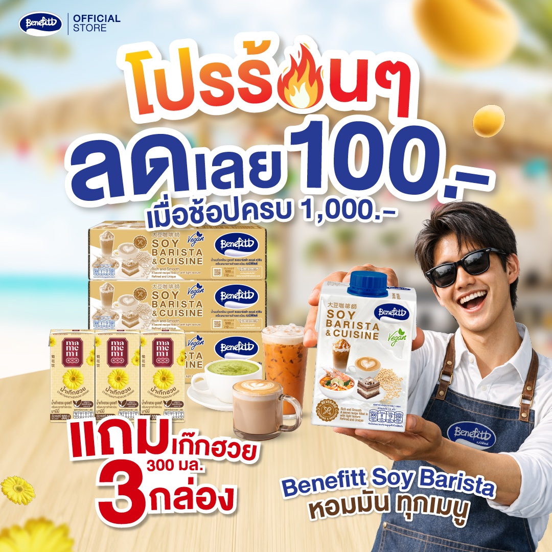 “เบนิฟิตต์ ซอย บาริสต้า” หอมมันอร่อย ครบจบทุกเมนู เติมความคุ้มแบบจัดเต็มกับโปรโมชันสุดฮอต ร้อนกว่าแดด เอาใจสายคาเฟ่และสายเฮลท์ตี้ เพียงช้อปครบ 1,000 บาท รับส่วนลดทันที 100 บาท พร้อมแถมฟรี น้ำเก๊กฮวยมามีมี่ ขนาด 300 มล. ถึง 3 กล่อง ให้ดื่มคลายร้อนแบบฟิน ๆ ไปเลย โปรโมชันตั้งแต่วันนี้ถึง 30 เมษายน 2569 ใครเป็นสายเฮลท์ตี้หรือโฮมคาเฟ่ รีบช้อปรีบตุนติดร้านติดบ้านได้ที่นี่ https://www.lactasoyshop.com/product-category/benefitt