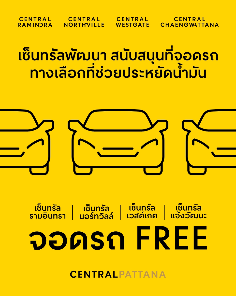 - เซ็นทรัล แจ้งวัฒนะ อาคาร B ชั้น 4 ฟรี เมื่อเข้าจอดก่อน 06.00-10:00 น.