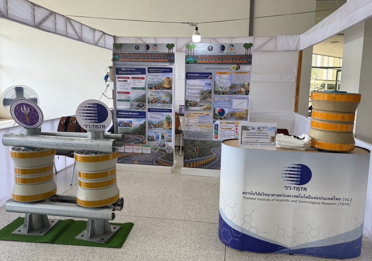 โดย ดร. ศิริพร ลาภเกียรติถาวร ผู้เชี่ยวชาญพิเศษ วว. ได้รับมอบหมายจาก ผศ.ดร.วีรชัย อาจหาญ ผู้ว่าการ วว. ในการเข้าร่วมนำเสนอผลงาน “ราวกันชนลูกกลิ้งยางพารา” นวัตกรรมเพื่อเพิ่มความปลอดภัยบนท้องถนน และสร้างมูลค่าเพิ่มทางเศรษฐกิจจากยางพารา ผ่านการ pitching และการจัดนิทรรศการภายในงาน