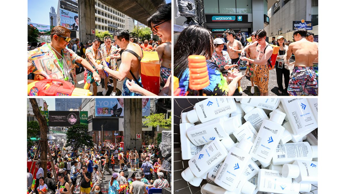 เก็บตกโมเมนต์จากสงกรานต์ที่ผ่านมา ท่ามกลางบรรยากาศเล่นน้ำสุดมันส์ภายใต้อุณหภูมิที่พุ่งสูงเกือบ 40 องศาเซลเซียส วัตสัน ผู้นำร้านเพื่อสุขภาพและความงามอันดับหนึ่งของประเทศไทย ปักหมุดย่านสีลมหนึ่งในไฮไลต์สำคัญของกรุงเทพฯ ที่มีผู้ร่วมงานพีคแตะแสนกว่าคน เป็นแลนด์มาร์คแจกครีมกันแดด Dermaction Plus by Watsons Advanced Sun Hybrid ฟรี! เสริมเกราะปกป้องผิวให้ทุกคน “สาดให้สนุก ไม่ต้องกลัวแดด” นอกจากนี้ ยังแจกของขวัญพิเศษให้ 300 คนแรก ด้วย Dermaction Plus by Watsons Skin Barrier EX Body Lotion ช่วยกู้ผิวหลังโดนแดดแบบทันใจ กระแสตอบรับเรียกได้ว่าร้อนแรงไม่แพ้อากาศ เมื่อผู้ร่วมงานทั้งชาวไทยและนักท่องเที่ยวแห่เข้าร่วมอย่างต่อเนื่องตลอด 3 วันที่ผ่านมา พร้อมแชร์โมเมนต์ไวรัลทั่วโซเชียล ตอกย้ำภาพจำ #กันแดดยืนหนึ่งต้องที่วัตสัน