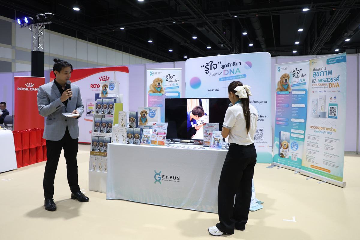 หนึ่งในไฮไลต์สำคัญของงาน PET EXPO THAILAND 2026 ปีนี้ นั่นคือการเปิดตัว Geneus Pet ผลิตภัณฑ์ตรวจวิเคราะห์ดีเอ็นเอสำหรับสัตว์เลี้ยงจาก บริษัท จีเนียส เจเนติกส์ จำกัด ซึ่งขยับขยายมาจากความเชี่ยวชาญด้านการตรวจพันธุกรรมมนุษย์ภายใต้แบรนด์ Geneus DNA ที่เป็นที่รู้จักมาก่อนหน้านี้ นายนัชพณ ซื่อสัตย์กุล ผู้อำนวยการฝ่ายการตลาด บริษัท จีเนียส เจเนติกส์ จำกัด เปิดเผยถึงจุดเริ่มต้นของผลิตภัณฑ์นี้ว่า เกิดขึ้นจากการมองเห็นเทรนด์รักสัตว์เลี้ยงที่เติบโตขึ้นอย่างก้าวกระโดด บริษัทจึงนำความเชี่ยวชาญด้านพันธุศาสตร์มาพัฒนาต่อยอดเพื่อตอบโจทย์ความต้องการของเจ้าของสัตว์เลี้ยงที่ต้องการดูแลเพื่อนรักอย่างมีประสิทธิภาพ