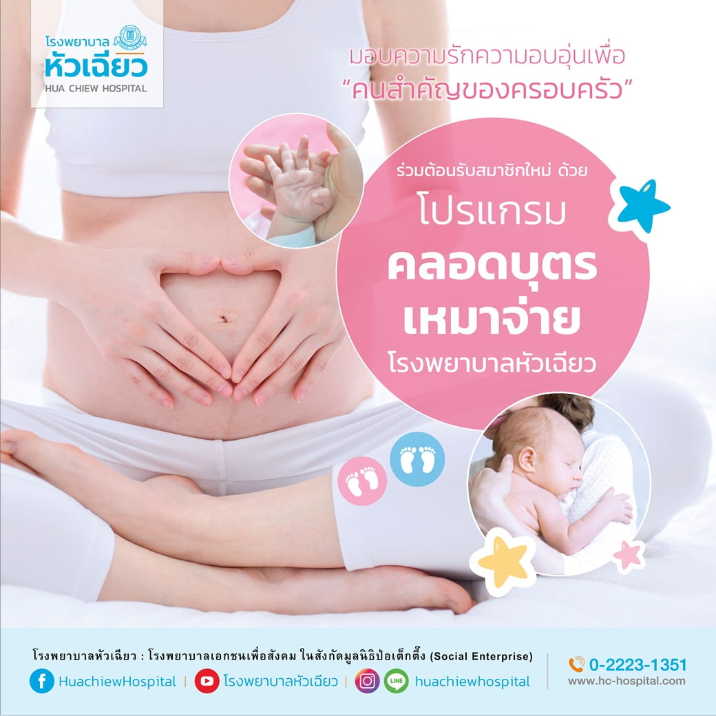 ศูนย์แม่และเด็ก โรงพยาบาลหัวเฉียว ร่วมต้อนรับสมาชิกใหม่ด้วยโปรแกรมคลอดบุตรเหมาจ่าย เพื่อคนสำคัญของครอบครับและเตรียมความพร้อมดูแลโดย สูติแพทย์ผู้ชำนาญการและกุมารแพทย์เฉพาะทางทารกแรกเกิดและปริกำเนิด ตลอด 24 ชั่วโมง ตั้งแต่วันนี้ – 31 ธันวาคม 2565