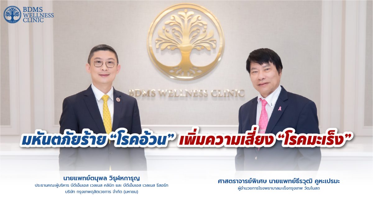 นายแพทย์ตนุพล วิรุฬหการุญ ประธานคณะผู้บริหาร บีดีเอ็มเอส เวลเนส คลินิก และ บีดีเอ็มเอส เวลเนส รีสอร์ท บริษัท กรุงเทพดุสิตเวชการ จำกัด (มหาชน) และนายกสมาคมแพทย์ฟื้นฟูสุขภาพและส่งเสริมการศึกษาโรคอ้วน กรุงเทพ (BARSO) และ ศาสตราจารย์พิเศษ นายแพทย์ธีรวุฒิ คูหะเปรมะ ผู้อำนวยการโรงพยาบาลมะเร็งกรุงเทพ วัฒโนสถ ขอรณรงค์ให้สังคมตระหนักเห็นภัยร้ายของโรคอ้วน และหยุดการเพิ่มขึ้นของวิกฤตโรคอ้วน เพื่อเป็นอีกหนึ่งวิธีในการลดจำนวนผู้ป่วยมะเร็ง โรคที่คร่าชีวิตของผู้คนไปมากที่สุดเป็นอันดับต้น ๆ ของโลก เพราะแม้ปัจจัยที่เพิ่มความเสี่ยงมะเร็งจะมีหลายปัจจัย แต่การรักษาน้ำหนักตัวให้อยู่ในเกณฑ์ที่เหมาะสมก็เป็นอีกหนึ่งวิธีที่สำคัญที่จะช่วยลดความเสี่ยงในการเป็นมะเร็งได้จริง