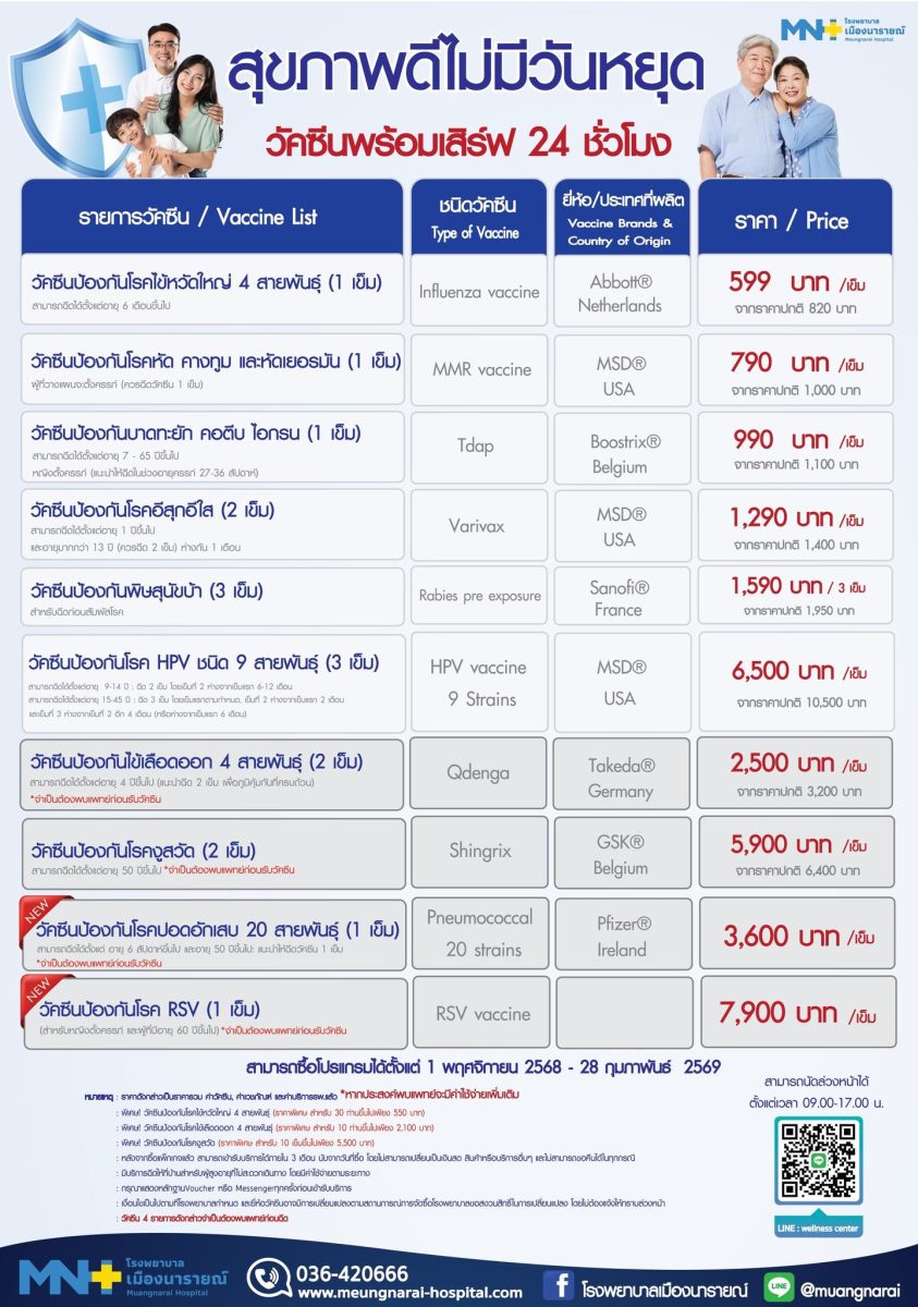 โปรโมชั่น พิเศษของโรงพยาบาลเมืองนารายณ์ พบกับ Campaign สุขภาพดีไม่มีวันหยุด วัคซีนพร้อมเสิร์ฟ 24 ชั่วโมง