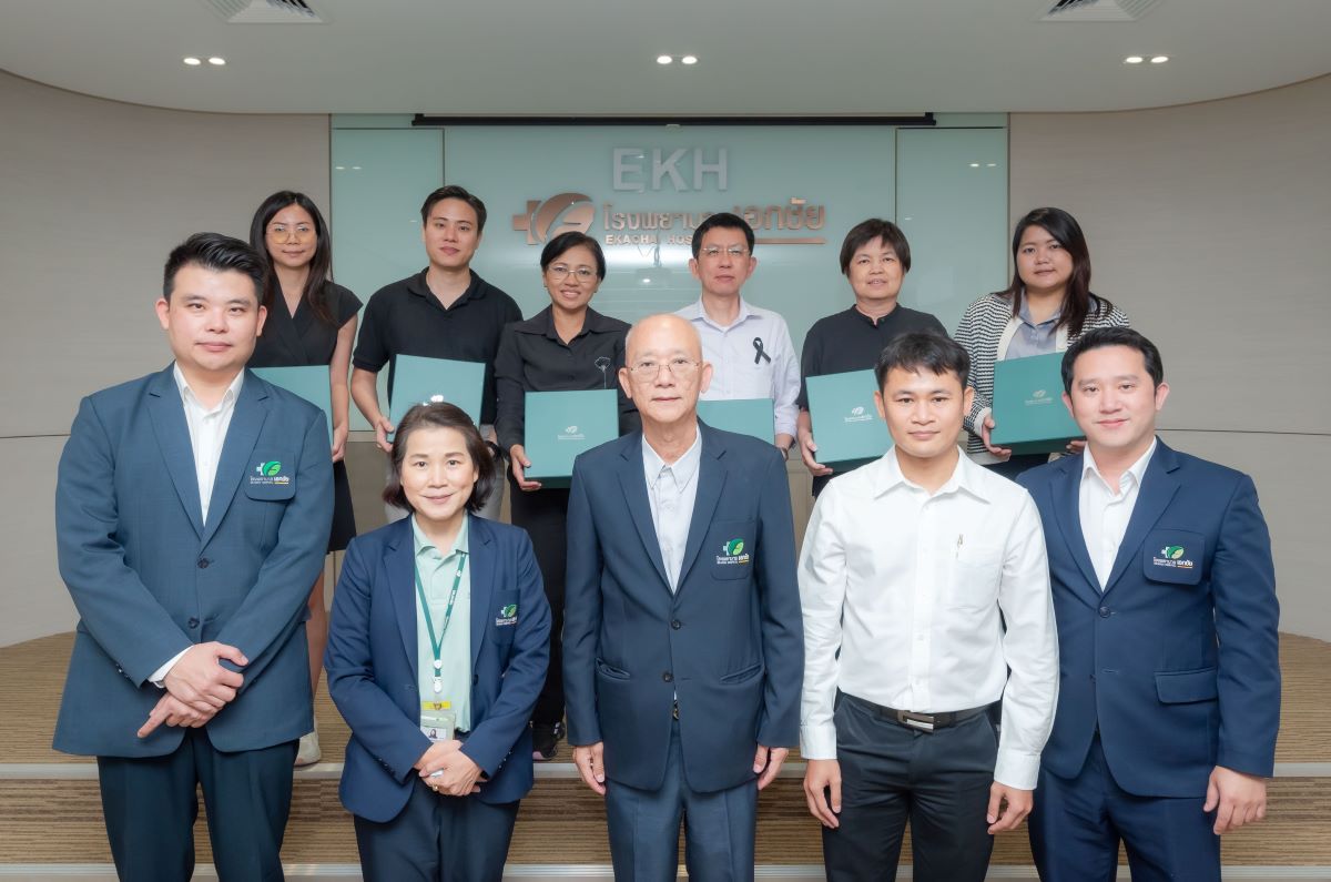 นายแพทย์อำนาจ เอื้ออารีมิตร (แถวหน้าที่ 3 จากซ้าย) กรรมการและผู้อำนวยการโรงพยาบาล คุณสุทธิพงศ์ ตั้งสัจจะพจน์ (ซ้ายสุด) กรรมการและผู้ช่วยผู้อำนวยการฝ่ายบัญชีและการเงิน พร้อมคณะผู้บริหาร บมจ.เอกชัยการแพทย์ (EKH) ให้การต้อนรับนักวิเคราะห์หลักทรัพย์ ในโอกาสให้เกียรติเข้ารับฟังข้อมูลภาพรวมการเติบโตของ EKH พร้อมนำเสนอศักยภาพแหล่งรายได้ใหม่ขององค์กร และเยี่ยมชมห้องปฎิบัติการตรวจสวนหลอดเลือดหัวใจและหลอดเลือดสมอง รวมถึงความคืบหน้าในการก่อสร้างอาคาร C โดยบริษัทฯ เชื่อว่าธุรกิจและผลการดำเนินงานในไตรมาส 4/2568 จะเติบโตในทิศทางที่ดี จากแนวโน้มการเข้ารับบริการรักษาและตรวจสุขภาพที่เพิ่มขึ้นอย่างต่อเนื่อง รวมถึง อัตราการครองเตียงผู้ป่วยใน (IPD) และจำนวนผู้ป่วยนอก (OPD) ที่สูงขึ้น ซึ่งงานดังกล่าวจัดขึ้นเมื่อเร็ว ๆ นี้ ณ ห้องประชุมสาคร 1 โรงพยาบาลเอกชัย