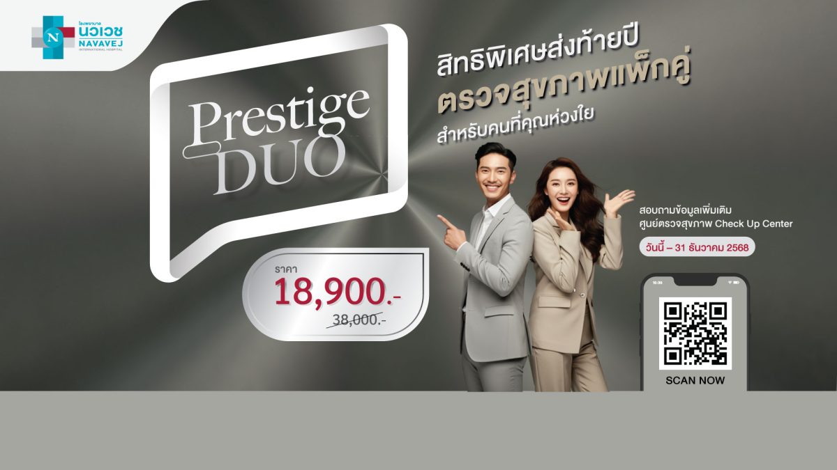 สิทธิพิเศษส่งท้ายปี เพื่อดูแลสุขภาพคุณและคนที่ห่วงใย สุขภาพดีคือของขวัญที่ล้ำค่ากว่าทุกสิ่ง โรงพยาบาลนวเวชขอมอบโปรแกรมตรวจสุขภาพแพ็กคู่ “Prestige DUO” ให้คุณได้ดูแลสุขภาพไปพร้อมกับคนสำคัญ ครอบคลุมการตรวจสุขภาพครบถ้วน ราคาเพียง 18,900 บาท (จากปกติ 38,000 บาท) จ่ายเพียง 1 สิทธิ์ รับสิทธิ์อีก 1 สำหรับวัยทำงานและผู้ที่ต้องการตรวจคัดกรองความเสี่ยงในโรคต่าง ๆ พร้อมพบแพทย์เฉพาะทาง สามารถคลิกซื้อได้ที่: https://bit.ly/4olVlYo เพราะการดูแลสุขภาพซึ่งกันและกันสร้างความสุขได้อย่างมีความหมาย วันนี้ – 31 ธันวาคม 2568 และระยะเวลาใช้บริการภายใน 31 ธันวาคม 2568 ซึ่งเงื่อนไขเป็นไปตามที่โรงพยาบาลกำหนด
