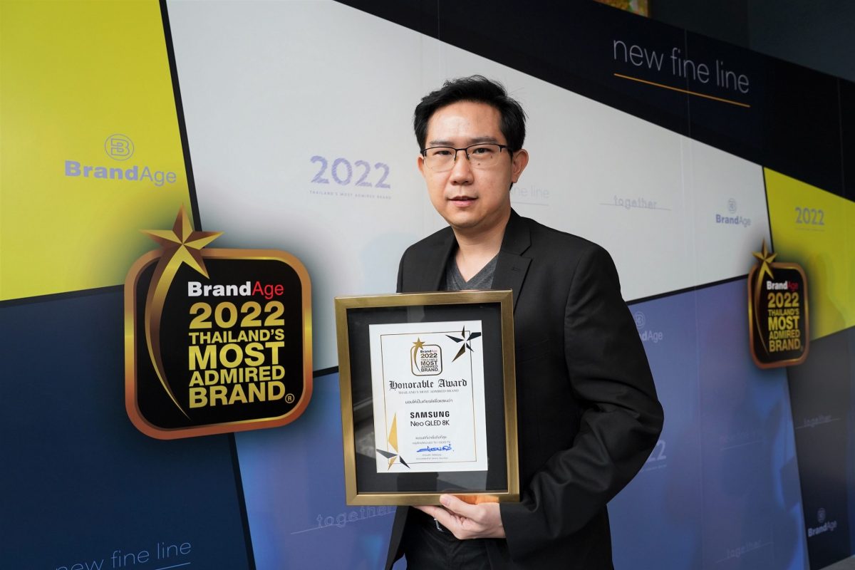 งานประกาศรางวัล Thailand’s Most Admired Brand and Why We Buy โดยนิตยสาร BrandAge นับเป็นรางวัลจากการสำรวจความคิดเห็นของผู้บริโภค เกี่ยวกับความน่าเชื่อถือของแบรนด์ต่างๆ ในประเทศไทย ที่ได้ดำเนินการมาอย่างยาวนานเป็นระยะเวลาถึง 23 ปี เพื่อค้นหาแบรนด์ที่มีความน่าไว้วางใจและศึกษาปัจจัยที่ขับเคลื่อนการตัดสินใจซื้อของผู้บริโภค โดยปีนี้ นายกวิน อิสระชัยพิสิฐ ผู้จัดการการตลาดผลิตภัณฑ์ ธุรกิจภาพและเสียง บริษัท ไทยซัมซุง อิเลคโทรนิคส์ จํากัด เป็นตัวแทนรับรางวัล