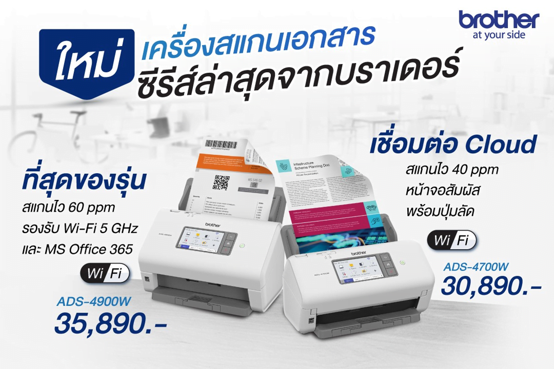 บริษัท บราเดอร์ คอมเมอร์เชี่ยล (ประเทศไทย) จำกัด เปิดตัวกลุ่มนวัตกรรมผลิตภัณฑ์เครื่องสแกนเนอร์แบบตั้งโต๊ะรุ่นล่าสุด ที่พัฒนาเทคโนโลยีการเชื่อมต่อเน็ทเวิร์ค ไวไฟ สแกนเอกสารง่ายผ่านคลาวด์เซอร์วิส ตอบโจทย์การเรียกใช้งานเอกสารทำงานได้ทุกที่ทุกเวลา ทั้งยังช่วยลดต้นทุนและลดพื้นที่การจัดเก็บเอกสารแบบเดิม มาพร้อมประสิทธิภาพการสแกนด้วยความเร็วสูง ทำงานร่วมกับกับซอฟต์แวร์จัดการเอกสาร สามารถแยกหรือรวมไฟล์เอกสารแบบอัตโนมัติ รวมทั้งสามารถสแกนเอกสารได้หลากหลายรูปแบบ และรองรับการสแกนเอกสารจำนวนมากต่อวัน พลิกโฉมการออกแบบด้วยหน้าจอระบบสัมผัส ลดการใช้งานผ่านคอมพิวเตอร์ เพิ่มความคล่องตัวในการทำงานมากขึ้น