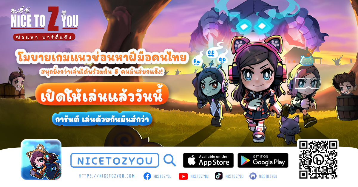 โดยเกม Nice to Z You ซ่อนหาปาร์ตี้แก๊ง เปิดให้บริการเต็มรูปแบบแล้ววันนี้ โดยหลังจากเปิดตัว เกมได้รับการแนะนำในหมวดหมู่เกมยอดนิยมและเกมน่าเล่นของ App Store ที่พร้อมให้ทุกคนเล่นได้ทั้งระบบ iOS และ Android ดาวน์โหลดได้ที่ https://bit.ly/44R1OQH หรือดูรายละเอียดเพิ่มเติมได้ที่เว็บไซต์ https://nicetozyou.com/
