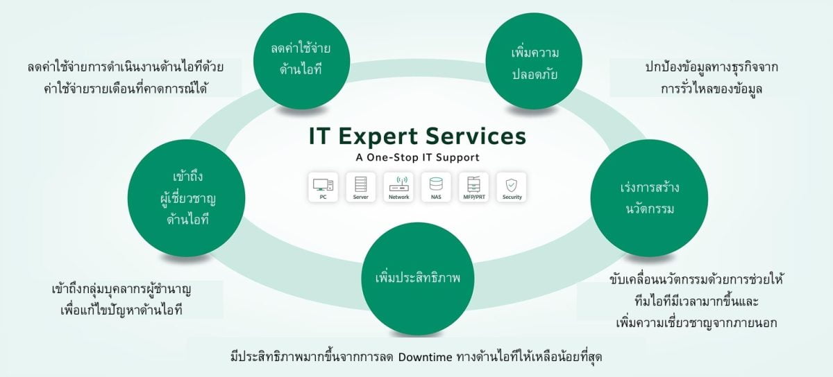 - เข้าถึงความเชี่ยวชาญด้านไอที – ช่วยจัดเตรียมทีมงานที่มีความสามารถและน่าเชื่อถือในโดเมนด้านไอทีต่าง ๆ ให้กับธุรกิจของลูกค้า เพื่อมอบการดูแลและจัดการงานด้านไอทีให้กับลูกค้าอย่างมืออาชีพ