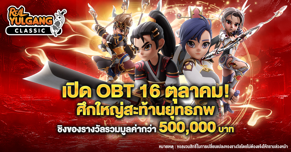 Real Yulgang Classic เกมมือถือแนว MMORPG ที่สร้างจากเกมในตำนานอย่าง Yulgang Online (โยวกัง ยุทธภพครบสลึง) ฉบับลิขสิทธิ์แท้จาก Mgame ประเทศเกาหลีใต้ ประกาศพร้อมเปิดให้บริการ Open Beta (OBT) อย่างเป็นทางการในวันที่ 16 ตุลาคม 2568 เวลา 12.00 น. มาร่วมย้อนความทรงจำและสร้างประวัติศาสตร์บทใหม่ใน Real Yulgang Classic ปฐมบทจ้าวยุทธภพ มันส์พร้อมกันทั้งระบบ iOS และ Android!