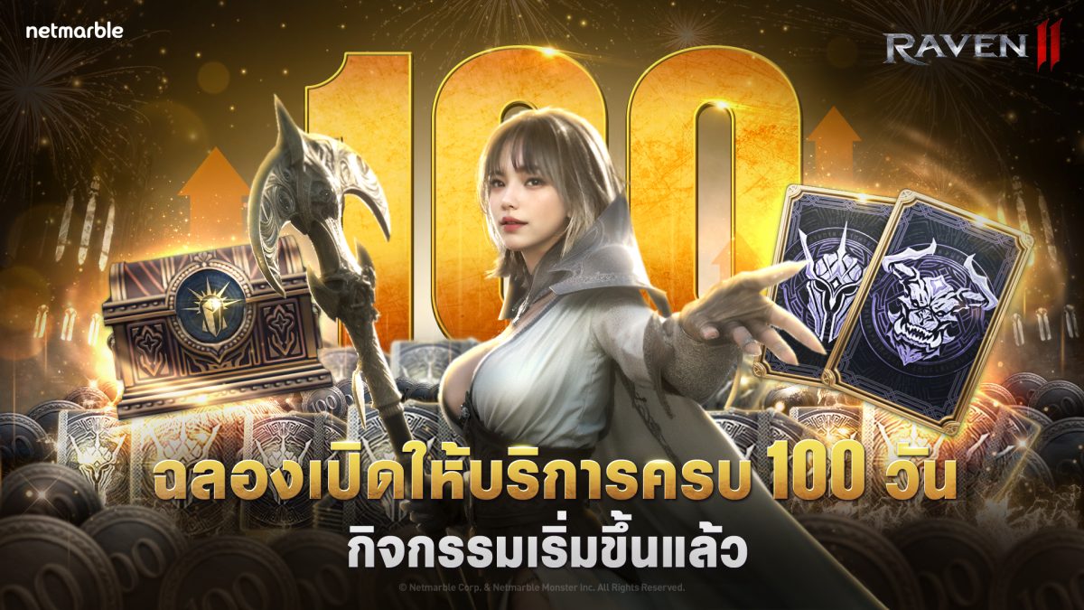 เน็ตมาร์เบิ้ล ผู้พัฒนาและผู้เผยแพร่เกมคุณภาพสูงชั้นนำ ได้ปล่อยอัปเดตใหม่สำหรับ Raven2 เกม MMORPG แห่งโลกดาร์กแฟนตาซีสุดโหด ฉลองครบ 100 วันนับตั้งแต่เกมเปิดให้บริการทั่วโลกด้วยชุดกิจกรรมภายในเกมและคอนเทนต์ใหม่ที่ผู้เล่นไม่ควรพลาด !