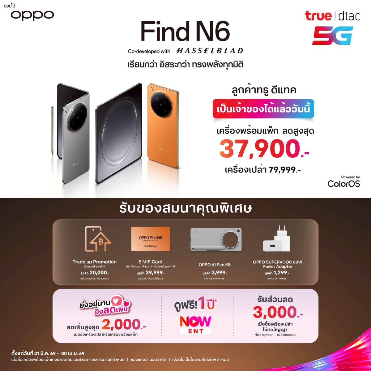 มาพร้อมโปรโมชัน First Sale ได้แล้ววันนี้! ที่สุดของนวัตกรรม OPPO Find N6 Co-developed with Hasselblad สมาร์ตโฟนจอพับระดับพรีเมียม กับรอยพับที่แทบมองไม่เห็น