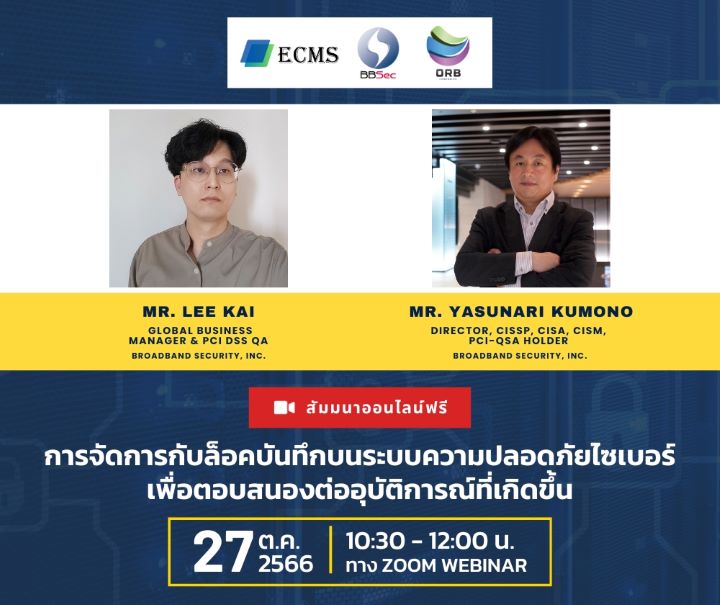 [สัมมนาออนไลน์ฟรี] การจัดการกับล็อคบันทึกบนระบบความปลอดภัยไซเบอร์เพื่อตอบสนองต่ออุบัติการณ์ที่เกิดขึ้น ขั้นตอนของการเจาะระบบเพื่อโจมตีไซเบอร์- รูปแบบการโจมตีทางไซเบอร์โดยแฮกเกอร์การดำเนินการทั่วไปในกา…