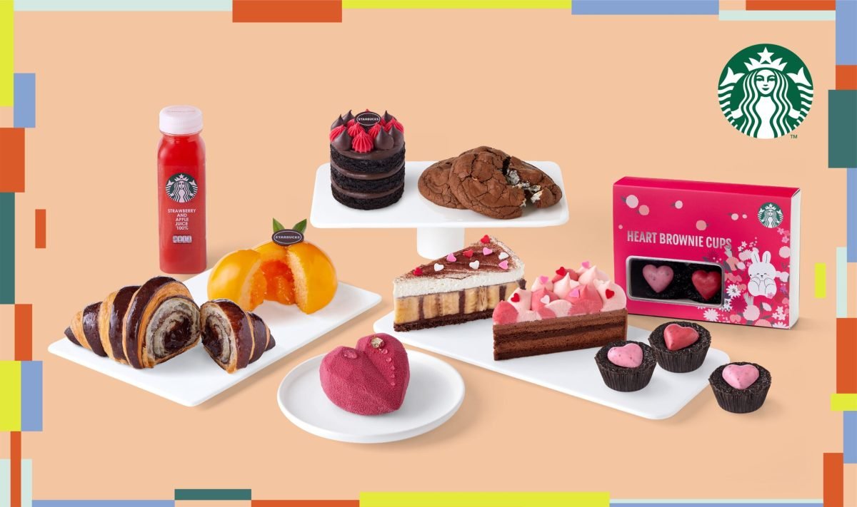 สตาร์บัคส์ นำเสนอขนมหลากเมนูเติมความรักช่วงเทศกาลวาเลนไทน์ อาทิ บราวนี่คัพรสช็อกโกแลต (Heart Brownie Cups) บราวนี่คุณภาพเยี่ยม ขนาดพอดีคำ รสชาติเข้มข้นด้วยช็อกโกแลตคุณภาพ ตกแต่งด้านบนด้วยช็อกโกแลตสีชมพูและสีแดง เพิ่มความกรุบกรอบด้วยเวเฟอร์ชิ้นเล็กๆ บรรจุในกล่องสีสันสวยงาม เหมาะแก่การซื้อเป็นของขวัญช่วงเทศกาลแห่งความรัก ช็อกโกแลตบานอฟฟี่พาย (Chocolate Banoffee Pie) บานอฟฟี่สี่ชั้นประกอบด้วย ฐานคุกกี้ช็อกโกแลตกรุบกรอบ กล้วยหอมชิ้นโต ครีมช็อกโกแลตเข้มข้น และวิปครีมเนื้อเบานุ่ม พร้อมตกแต่งด้วยผงโกโก้และช็อกโกแลตรูปหัวใจ มูสเค้กช็อกโกแลตรูปหัวใจ (Heart Chocolate Mousse Cake) สุดน่ารักที่ด้านในประกอบด้วยบราวนี่ สอดไส้ตรงกลางด้วยเยลลี่มิกซ์เบอร์รี่ และครีมมูสช็อกโกแลตเนื้อเนียน ละมุนลิ้น ด้านนอกตกแต่งเป็นสีชมพู เป็นต้น