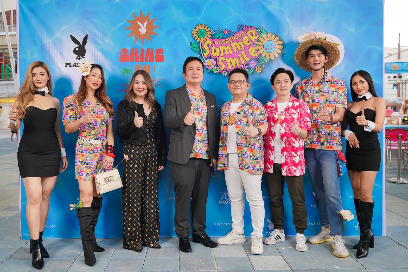 เนื่องด้วย ภูมิวรรธน์ หวังวรวงศ์ ประธานกรรมการ บริษัท ล้ำยุค (มิลเลนเนี่ยม 2002) จำกัด (ที่ 4 จากซ้าย) พร้อมด้วย ประวิช จรรยาสิทธิกุล ประธานเจ้าหน้าที่บริหาร ศูนย์การค้าจังซีลอน ป่าตอง ภูเก็ต (ที่ 4 จากขวา), พรภัทร หวังวรวงศ์ ผู้อำนวยการสายงานทั่วไป บริษัท ล้ำยุค (มิลเลนเนี่ยม 2002) จำกัด (ที่3 จากซ้าย) และ แจ็คกี้ เธีย ผู้จัดการทั่วไปศูนย์การค้าจังซีลอน (ที่3 จากขวา) ร่วมงานเปิดตัวคอลเลคชั่นพิเศษฉลองครบรอบ 70 ปี PLAYBOY พร้อมคอลเลคชั่นซัมเมอร์ใหม่ล่าสุด ที่แรกในประเทศไทย ภายใต้แนวคิด “Shine On Fashion Show by PLAYBOY” โดยมี มิรา เตชะวณิช และ กิตติภพ เอ่งฉ้วน เซเลบริตี้ชื่อดังของจังหวัดภูเก็ต ให้เกียรติร่วมงาน ณ โซนเดอะเบย์ ศูนย์การค้าจังซีลอน ป่าตอง ภูเก็ต เมื่อเร็วๆ นี้