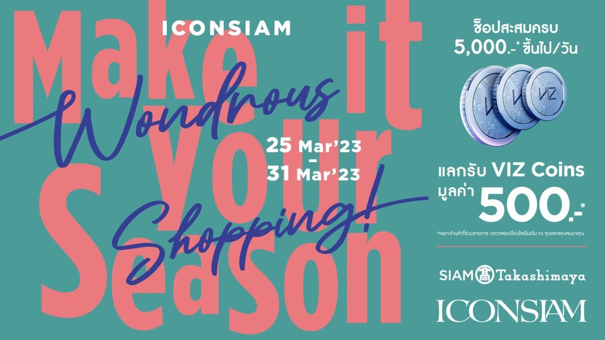 ไอคอนสยาม แลนด์มาร์กระดับโลกริมแม่น้ำเจ้าพระยา จัดแคมเปญโปรโมชั่นช้อปปิ้งสุดพิเศษ “ICONSIAM Wondrous Shopping, Make It Your Season” เอาใจนักน้อปตัวยง พามาเลือกช้อปไอเท็มเด็ด ที่คัดสรรสินค้าคุณภาพชั้นเลิศมาให้เลือกช้อปกันอย่างจุใจในหมวดร้านค้าแฟชั่น ความงาม และ Lifestyle ภายในไอคอนสยาม รวมสยาม ทาคาชิมายะ เพียงช้อปครบตามกำหนด สามารถแลกรับ VIZ COINS รวมมูลค่า 1 ล้านบาท!