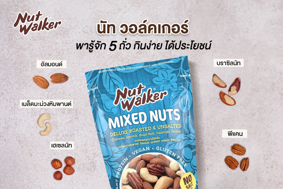 และถ้าหากคุณกำลังมองหาถั่วเหล่านี้มาทานเล่น เราขอแนะนำ นัท วอล์คเกอร์ มิกซ์นัทเดอลุกซ์ ไม่ใส่เกลือ ที่รวมถั่วทั้ง 5 ชนิด ข้างต้นไว้ในซองเดียว ให้คุณได้ลิ้มรสความอร่อย มัน เคี้ยวเพลินจากถั่วคุณภาพพรีเมียมที่เราคัดสรรมาอย่างพิถีพิถัน และยังอัดแน่นไปด้วยคุณประโยชน์มากมายจากถั่วแต่ละชนิด อร่อยง่ายแบบได้สุขภาพดี