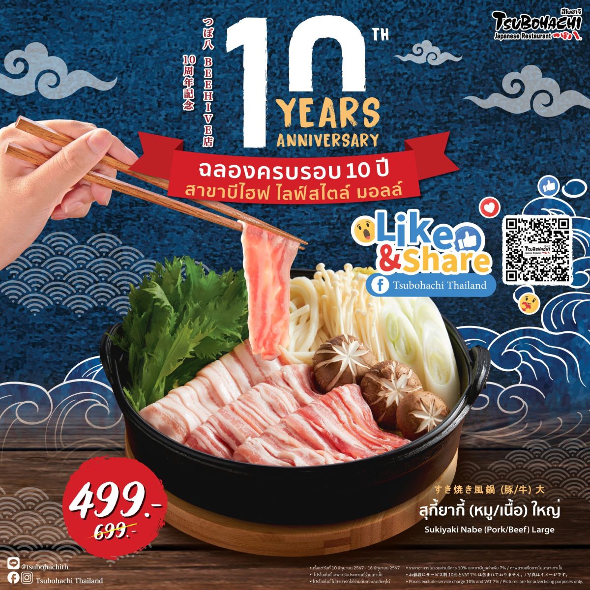 ร้านอาหารญี่ปุ่น “สึโบฮาจิ” ต้นตำรับอันดับ 1 อาหารญี่ปุ่นสไตล์ฮอกไกโด ภายใต้การบริหารงานโดย อิมแพ็ค เมืองทองธานี ฉลองครบรอบ 10 ปี สาขาบีไฮฟ ไลฟ์สไตล์ มอลล์ ซึ่งเป็นสาขาที่ให้บริการเป็นสาขาแรกๆ ในขณะเปิดกิจการในประเทศไทย ลดราคาพิเศษเมนู “สุกี้ยากี้” กับน้ำซุปน้ำดำสูตรพิเศษสไตล์ฮอกไกโด โดยมีให้เลือกทั้ง “หมูสามชั้น” และ “เนื้อวัว” คุณภาพดี พร้อมด้วยอุด้ง เห็ดหอม เห็ดเข็มทอง และผักมิซูน่า เสิร์ฟไซส์ใหญ่ อิ่มอร่อยจุใจเพียง 499 บาท จากราคาปกติ 699 บาท โดยสามารถรับส่วนลดด้วยการร่วมสนุกง่ายๆ เพียงกดไลก์และแชร์เฟซบุ๊ก: Tsubohachi Thailand ในระหว่างวันที่ 10 – 16 มิถุนายน ศกนี้ (หรือจนกว่าจะแจ้งการเปลี่ยนแปลง) ที่ร้าน “สึโบฮาจิ” สาขาบีไฮฟ ไลฟสไตล์ มอลล์ เท่านั้น