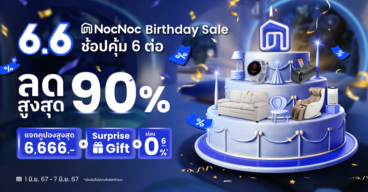 - NocNoc Live จัดให้! 6 ลดใหญ่ฉลองวันเกิด เวลา 19.00 น. สินค้าแต่งบ้านราคาสุดคุ้ม เริ่มต้น 66 บาท และส่วนลดมากมาย