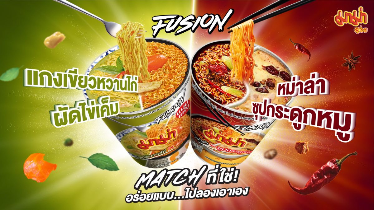 บริษัท สหพัฒนพิบูล จำกัด (มหาชน) ผู้จัดจำหน่ายผลิตภัณฑ์ “มาม่า” กลับมาตอกย้ำความอร่อยแบบไม่ซ้ำใครอีกครั้งกับ มาม่าคัพซีรีย์ฟิวชั่น ที่ผสมผสานบะหมี่กึ่งสำเร็จรูป 2 รสชาติเข้าด้วยกันในถ้วยเดียว เพื่อให้ผู้บริโภคได้ลิ้มลองรสชาติที่แปลกใหม่แบบไม่เหมือนใคร ในสโลแกน “อร่อยแบบ…ไปลองเอาเอง” โดยในปีนี้มาม่ากลับมากับ 2 รสชาติใหม่