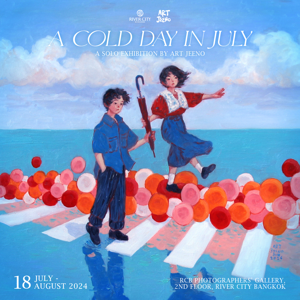 ริเวอร์ ซิตี้ แบงค็อก ภูมิใจเสนอ “A Cold Day in July” นิทรรศการเดี่ยวครั้งแรกในรอบ 7 ปี ของ Art Jeeno ศิลปินผู้คว้ารางวัล Japan International Manga Award มาได้ถึง 3 ครั้ง อีกทั้งยังเป็นศิลปินที่สามารถถ่ายทอดความอ่อนไหวและเปราะบางของมนุษย์ออกมาทางผืนผ้าใบได้อย่างเปี่ยมความรู้สึก