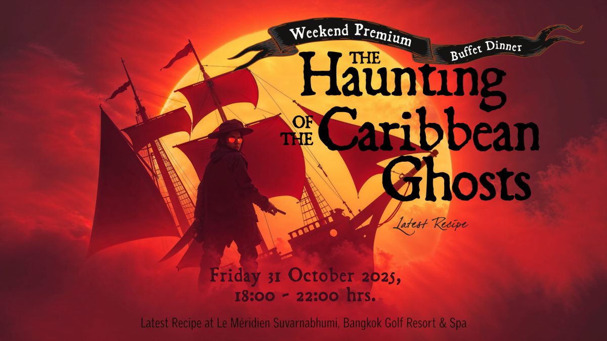 วันศุกร์ที่ 31 ตุลาคม 2568 นี้ มาอิ่มอร่อยกับบุฟเฟ่ต์รับวันฮัลโลวีน Weekend Premium Buffet ในชุดสุดระทึกขวัญสไตล์คุณและชิงรางวัลเครื่องกายยอดเยี่ยมในธีม The Haunting of the Caribbean Ghosts