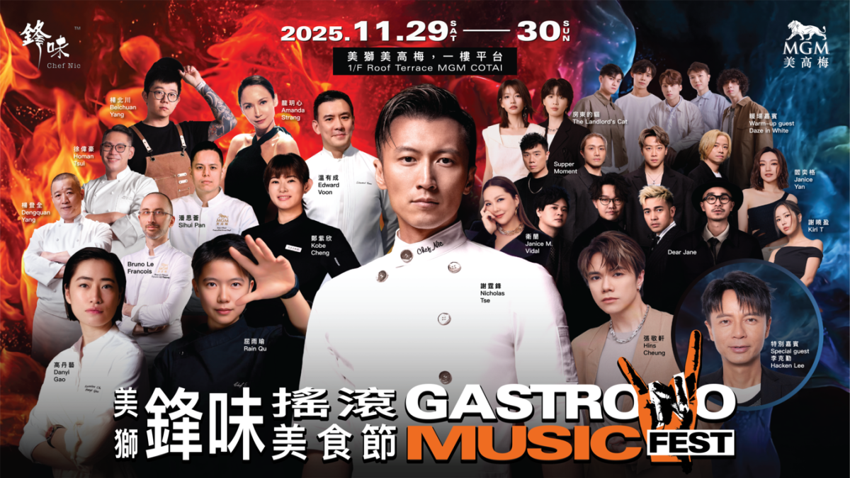 MGM จับมือกับแบรนด์ไลฟ์สไตล์และอาหารชื่อดัง “Chef Nic” อีกครั้ง จัดงาน “MGM Chef Nic Gastronomusic Fest 2025” ครั้งที่ 4 ขึ้นในวันที่ 29–30 พฤศจิกายน ณ MGM COTAI เพื่อเฉลิมฉลองให้กับสถานะอันโดดเด่นของมาเก๊าในฐานะเมืองสร้างสรรค์ด้านอาหาร (UNESCO Creative City of Gastronomy) และเมืองแห่งศิลปะการแสดง (City of Performing Arts) ภายใต้องค์การยูเนสโก สืบเนื่องจากความสำเร็จอันยิ่งใหญ่ของทั้งสามครั้งที่ผ่านมา ศิลปินมากความสามารถ Nicholas “Chef Nic” Tse จะกลับมาพร้อมทีมเชฟนานาชาติระดับแนวหน้า ร่วมด้วยสุดยอดเชฟของ MGM และศิลปินป๊อปชั้นนำจากทั่วเอเชีย เพื่อมอบประสบการณ์งานเทศกาลกลางแจ้งสุดยิ่งใหญ่ที่เต็มไปด้วยพลัง ความสร้างสรรค์ และความบันเทิงครบทุกประสาทสัมผัส เติมชีวิตชีวาให้กับภาพลักษณ์การท่องเที่ยวเชิงวัฒนธรรมของมาเก๊าอีกครั้ง บัตรเข้าชมจะเริ่มเปิดจำหน่ายตั้งแต่วันที่ 14 ตุลาคมนี้ เป็นต้นไป