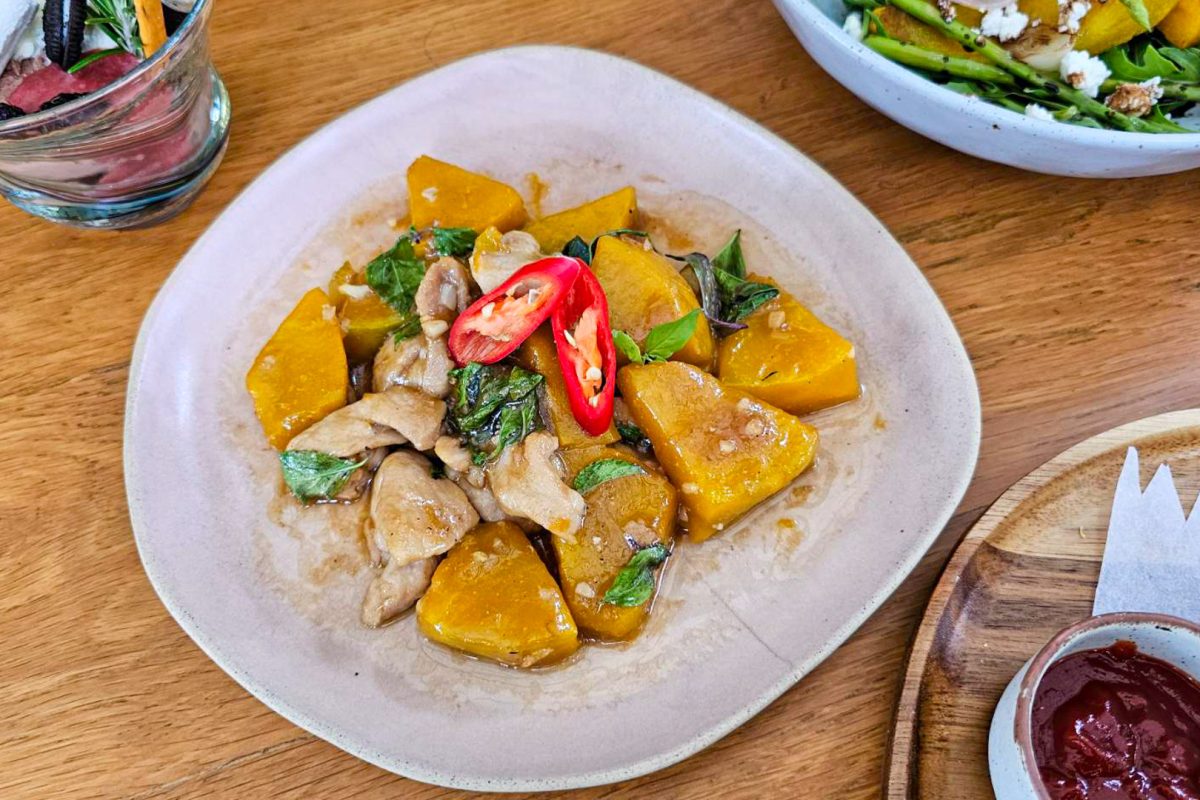 เมนูหลักที่ต้องลอง:• ผัดฟักทองสไตล์ไทยกับหมูสับรสเข้มข้น หอมกลิ่นสมุนไพร 220 บาท++