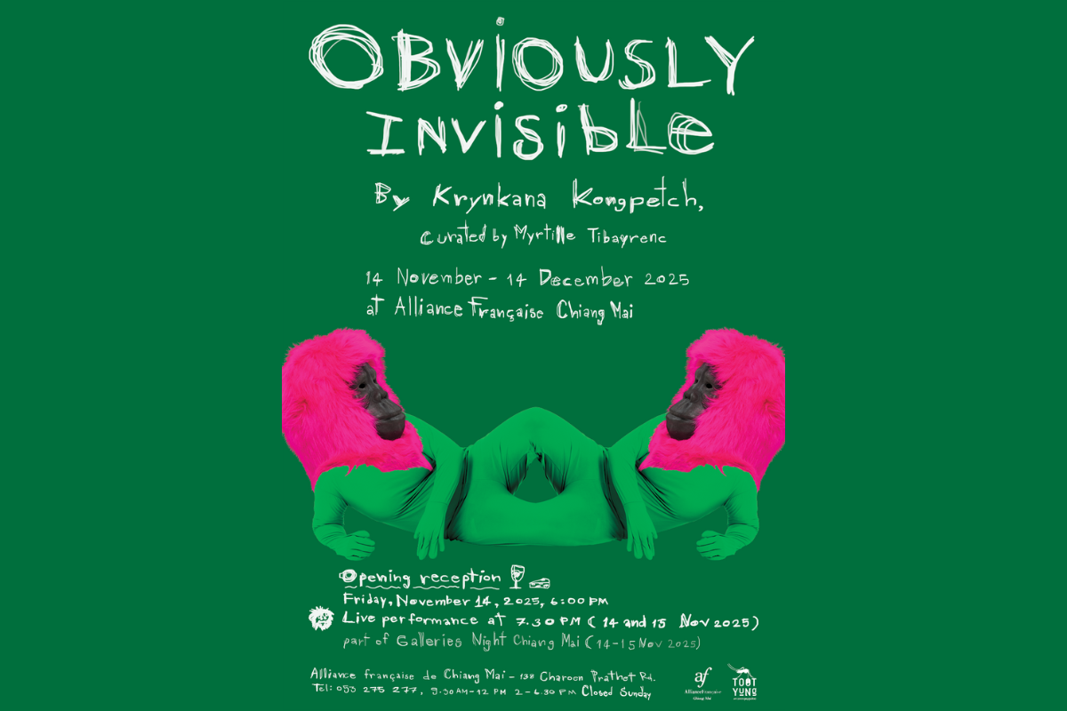สมาคมฝรั่งเศสเชียงใหม่ มีความยินดีนำเสนอ Obviously Invisible นิทรรศการเดี่ยวชุดใหม่โดยศิลปินไทย กรินคณา คงเพชร ภัณฑารักษ์ Myrtille Tibayrenc เปิดให้ชมในวันศุกร์ที่ 14 พฤศจิกายน 2025 เป็นส่วนหนึ่งของงาน Galleries Night เทศกาลศิลปะประจำปีที่จัดโดยสถานเอกอัครราชทูตฝรั่งเศสประจำประเทศไทย