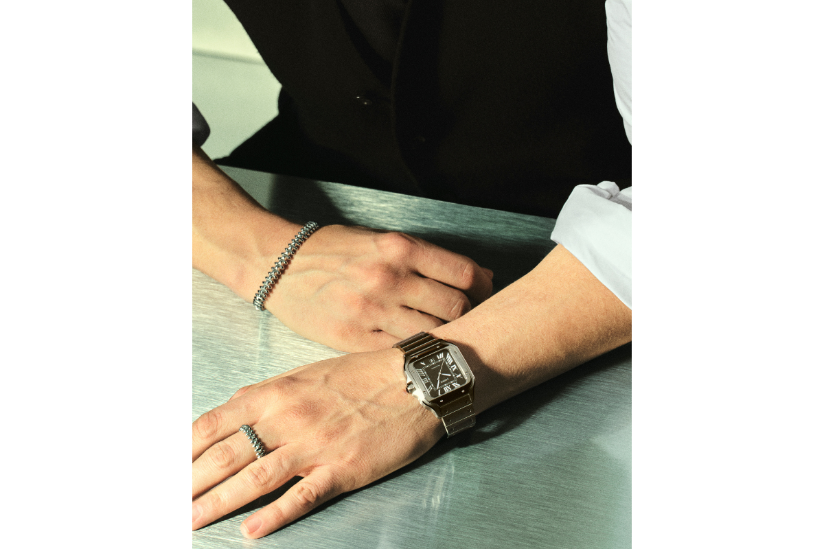 สืบสานดีไซน์อันเป็นตำนานของเรือนเวลาซานโตสพร้อมยกระดับด้วยวัสดุไทเทเนียม ที่มีน้ำหนักเบากว่าสตีลถึง 43 เปอร์เซ็นต์ ทว่าแข็งแกร่งกว่า 1.5 เท่า ความหรูหราที่ซ่อนพลังขับเน้นด้วยผิวสัมผัสแมตต์แบบบีดบลาสต์ในโทนสีแอนทราไซต์ ตัดกับเม็ดมะยมประดับสปิเนลสีดำ
