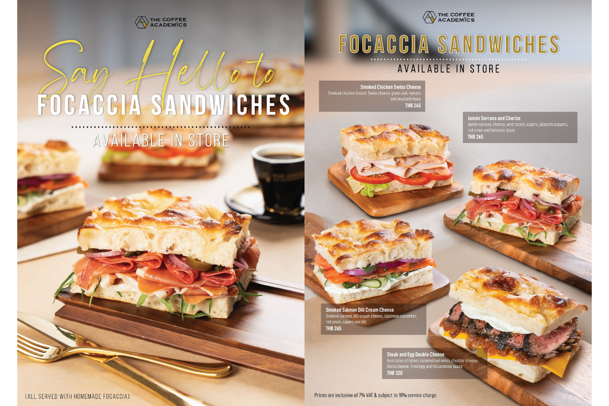 ประสบการณ์ที่มากกว่าแค่แซนด์วิช “FOCACCIA SANDWICHES” ไม่ได้เป็นเพียงเมนูอาหารเช้าหรือมื้อสาย แต่คือความอร่อยที่พร้อมเสิร์ฟตลอดทั้งวัน (All-Day Dining) เหมาะอย่างยิ่งสำหรับการจับคู่กับกาแฟสเปเชียลตี้คุณภาพดี ที่ “เดอะ คอฟฟี่ อะคาเดมิคส์” คัดสรรเมล็ดกาแฟอาราบิก้าชั้นเลิศจากทั่วโลก