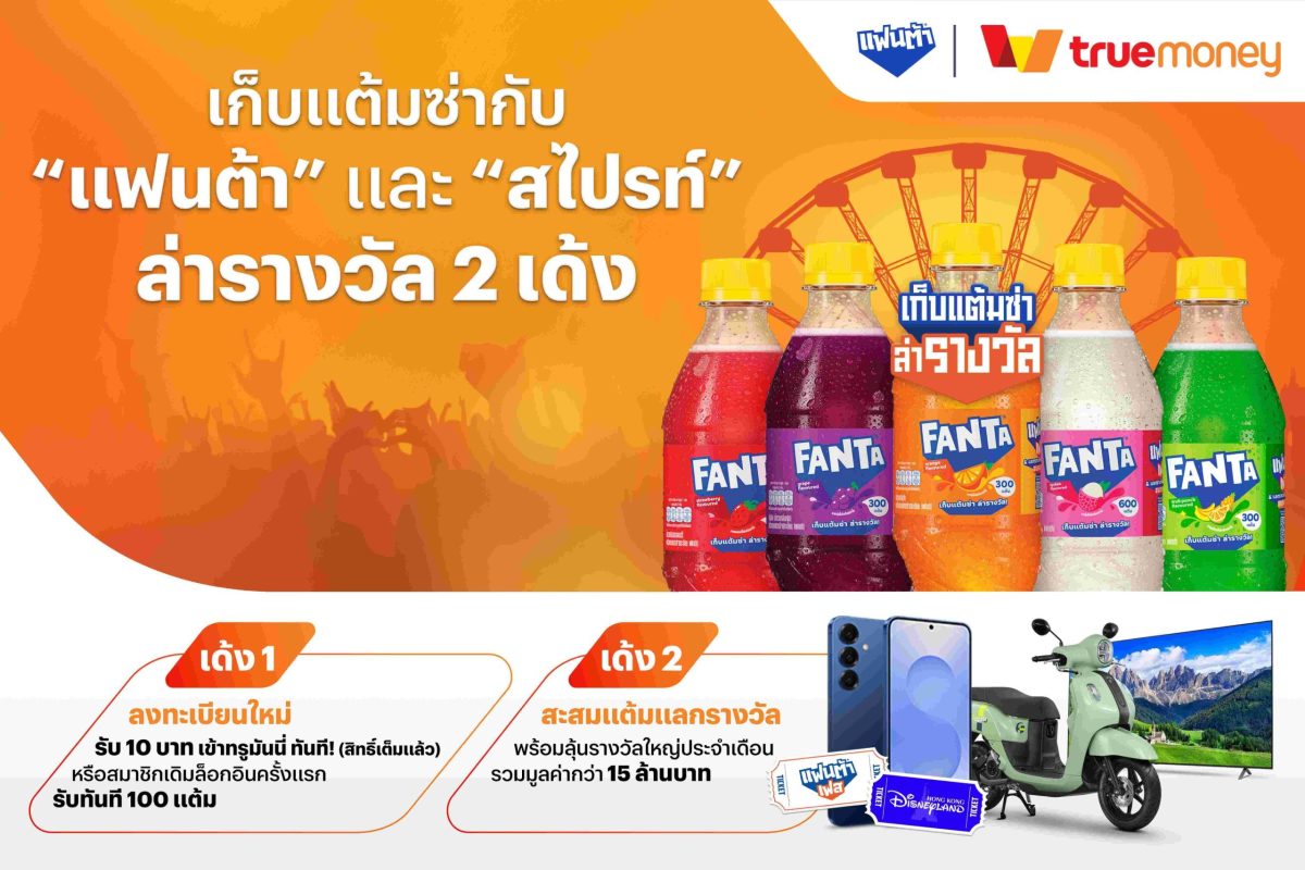 ผู้ใช้ทรูมันนี่สามารถเข้าร่วมแคมเปญ “แฟนต้า” เก็บแต้มซ่าล่ารางวัล ผ่านแอปทรูมันนี่ พร้อมสะสมแต้มจากการซื้อ “แฟนต้า” และ “สไปรท์” เพื่อล่ารางวัลจาก “แฟนต้า” ถึง 2 ต่อ โดยต่อที่ 1 สะสมแต้มแลกรับรางวัลและคูปองส่วนลดได้ทุกวัน มูลค่ารวมกว่า 14 ล้านบาท และต่อที่ 2 สะสมแต้มเพื่อลุ้นรับรางวัลใหญ่ทุกเดือน รวมมูลค่ากว่า 1 ล้านบาท