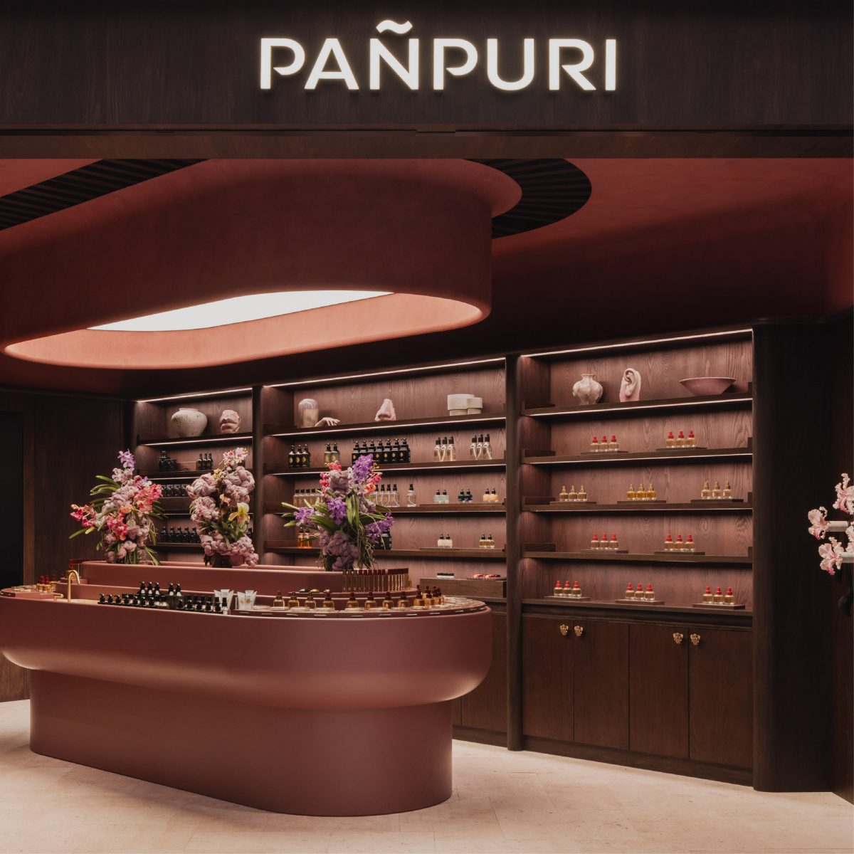 “องค์ประกอบภายในร้านผ่านการคัดสรรอย่างพิถีพิถัน โดยของตกแต่งหลายชิ้นนำเข้าจากประเทศไทย ผสมผสานอย่างลงตัวกับรูปทรงนกยูงเอกลักษณ์ของปัญญ์ปุริที่เปล่งประกายแสงอันอบอุ่นและนุ่มนวล เติมเต็มบรรยากาศภายในบูทีคแห่งนี้ให้ลงตัวและเป็นธรรมชาติ” Amy Lim หัวหน้าทีมออกแบบจาก Pupil กล่าว นอกจากการออกแบบ และทุกรายละเอียดที่ถูกเลือกเฟ้นอย่างบรรจง PAÑPURI Sensorial Boutique สิงคโปร์ยังรวบรวมผลิตภัณฑ์ไว้อย่างครบครันให้เลือกสรร พร้อมมี The Harmonists ที่คอยมอบคำแนะนำด้านกลิ่นหอมของปัญญ์ปุริ เพื่อเชื่อมโยงระหว่างกลิ่น อารมณ์ และความทรงจำผ่านผลิตภัณฑ์แต่ละชิ้น