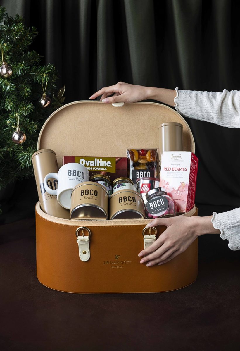 ห้องอาหารแบงค็อก เบคกิ้ง คอมพานี (บีบีโค) โรงแรมเจดับบลิว แมริออท กรุงเทพฯ ต้อนรับเทศกาลแห่งการให้ด้วยชุดของขวัญสุดพิเศษที่มีให้เลือกสรรถึง 3 ขนาด แต่ละกล่องอัดแน่นไปด้วยคุกกี้โฮมเมดและของพรีเมียมนานาชนิด สำหรับกระเช้าของขวัญขนาดเล็ก (Whispered Wonder) ราคา 3,900 บาทสุทธิ รวมสารพัดขนมหวานยอดนิยมจากห้องอาหารบีบีโค อาทิเช่น คุกกี้คอนเฟลก ช็อกโกแลตแคนดี้ ชีสสติ๊ก และน้ำผึ้งมัลเบอร์รี ส่วนกระเช้าของขวัญขนาดกลาง (Timeless Indulgence) ราคา 4,900 บาทสุทธิ เพิ่มเติมความอร่อยด้วยฟรุตเค้กประจำเทศกาล กาแฟสำเร็จรูปจากแบรนด์อิลลี่ และเครื่องดื่มโอวัลตินสูตรพิเศษจากสวิส ในขณะที่กระเช้าของขวัญขนาดใหญ่ (Majestic Muse) ราคา 5,900 บาทสุทธิ ยกระดับความพรีเมียมมากยิ่งขึ้นด้วยคุกกี้ช็อกโกแลตชิพ คุกกี้แมคคาเดเมีย คุกกี้ข้าวโอ๊ต มูสลี่เพื่อสุขภาพ กระเป๋าและแก้วจากห้องอาหารบีบีโค กระเช้าของขวัญแต่ละชุดเลือกสรรความอร่อยใส่ลงไปอย่างใส่ใจและจัดวางออกมาอย่างสวยงาม เพื่อเป็นตัวแทนความอบอุ่นพร้อมส่งต่อความห่วงใยในเทศกาลแห่งความสุขช่วงปลายปี