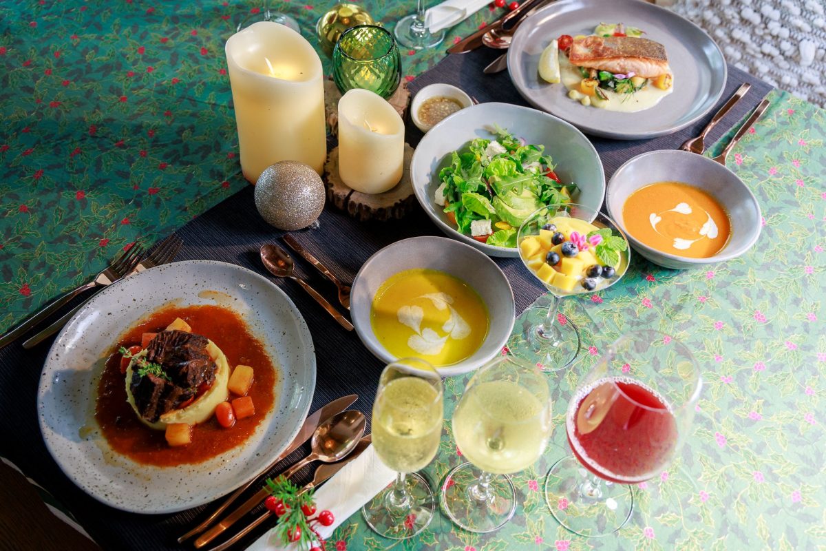 ไฮไลต์เมนูค่ำคืนแห่งการเฉลิมฉลอง เริ่มต้นความอร่อยด้วย ซุปฟักทองและมะเขือเทศเนื้อเนียน ความหอมละมุนที่เพิ่มรสความกลมกล่อมด้วยเบคอนกรอบ ต่อด้วยความสดชื่นของ สลัดผักฟาร์มออร์แกนิก ผสานอาโวคาโด ร็อกเก็ต และเฟตาชีส และน้ำสลัดอิตาเลียนโฮมเมด ที่ลงตัวทุกสัมผัส ต่อด้วยจานหลักความอร่อย 2 ตัวเลือก ได้แก่ แก้มวัวตุ๋น เนื้อนุ่มละลายเสิร์ฟคู่เห็ดออรินจิและมันฝรั่งบดเนื้อเนียนหรือ แซลมอนย่าง เสิร์ฟพร้อมผักย่างและซอสไวน์ขาวหอมละมุน ปิดท้ายค่ำคืนอันแสนประทับใจด้วย บลูเบอร์รีและมะม่วงพาร์เฟต์ ที่จะช่วยเติมเต็มการเฉลิมฉลองส่งท้ายปีเก่าได้อย่างสมบูรณ์แบบ